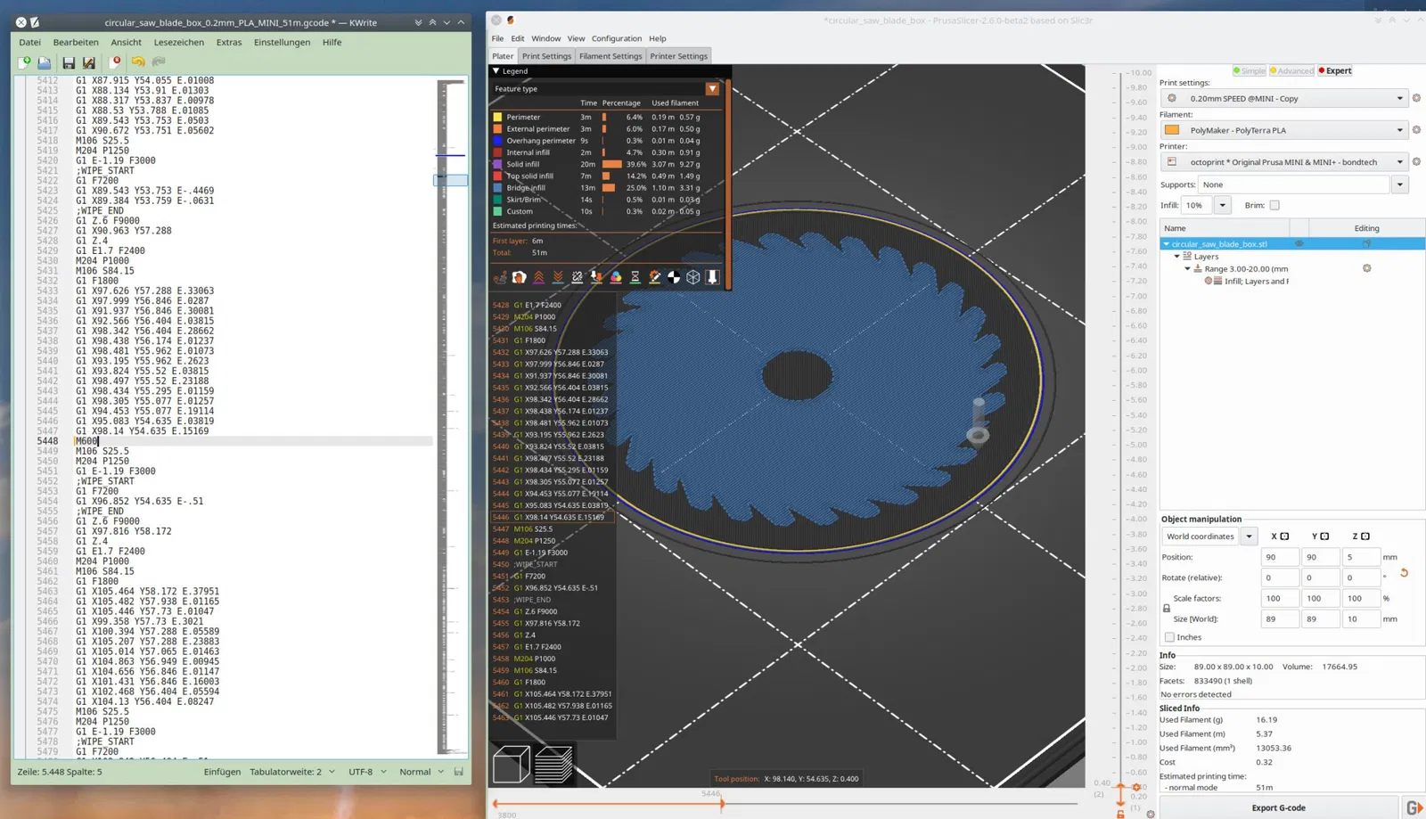 - mở tệp gcode trong một trình soạn thảo
