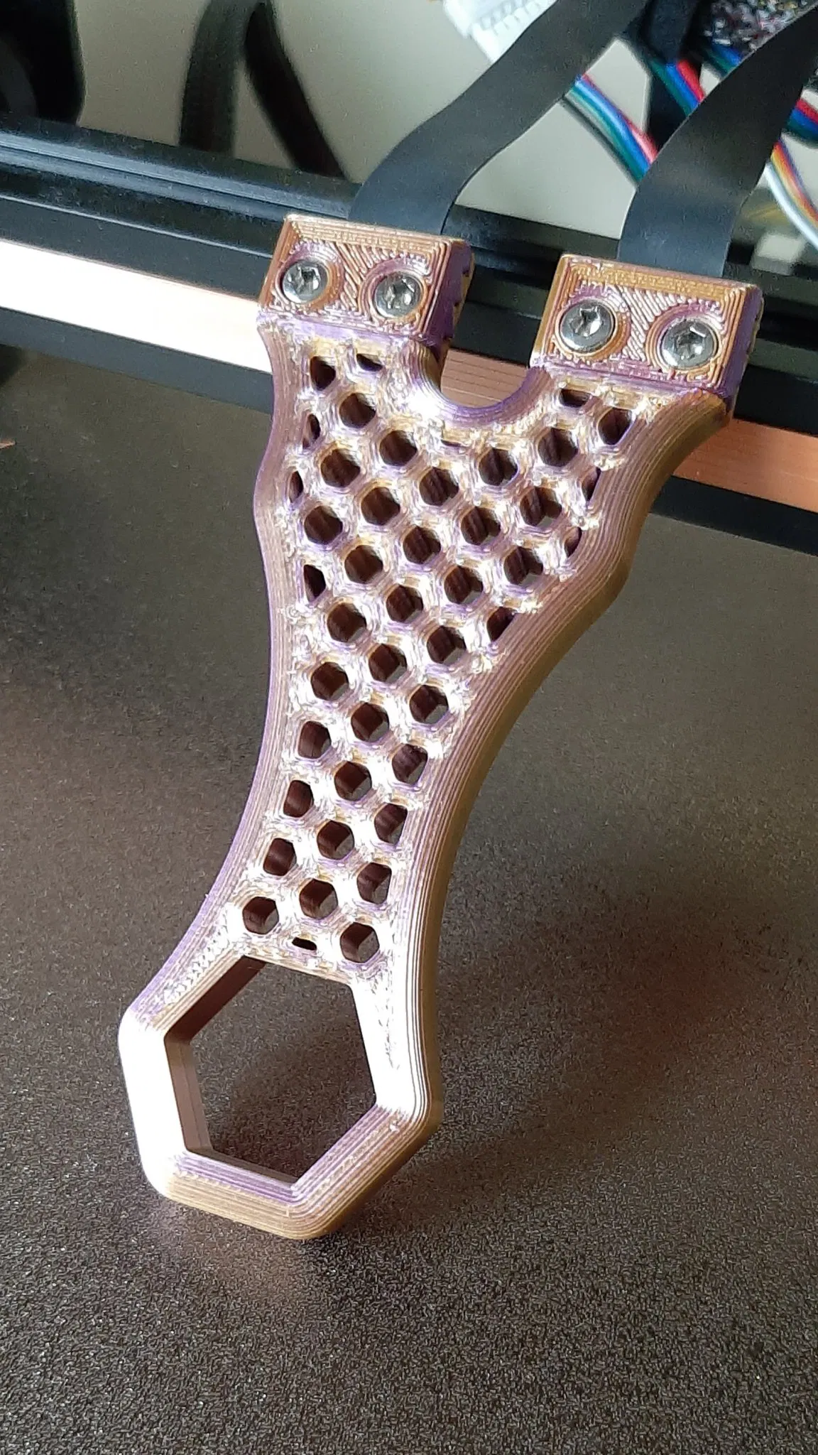"Stinger" là một khung ná tinh tế với thiết kế hình lục giác độc đáo được tích hợp vào tay cầm, cung cấp độ bám vững và kiểm soát tốt hơn. Tính năng thay thế dây nhanh chóng sáng tạo của nó cho phép thay dây một cách thuận tiện, sử dụng các vít M3 an toàn để điều chỉnh dễ dàng. Được thiết kế như một ná dưa, "Stinger" đảm bảo độ chính xác và chính xác trong việc bắn. Việc lắp ráp yêu cầu 4 vít M3 6mm và 4 đai ốc M3 để gắn kết an toàn, làm cho nó trở thành một lựa chọn đáng tin cậy và thân thiện với người dùng cho những người yêu thích ná.
