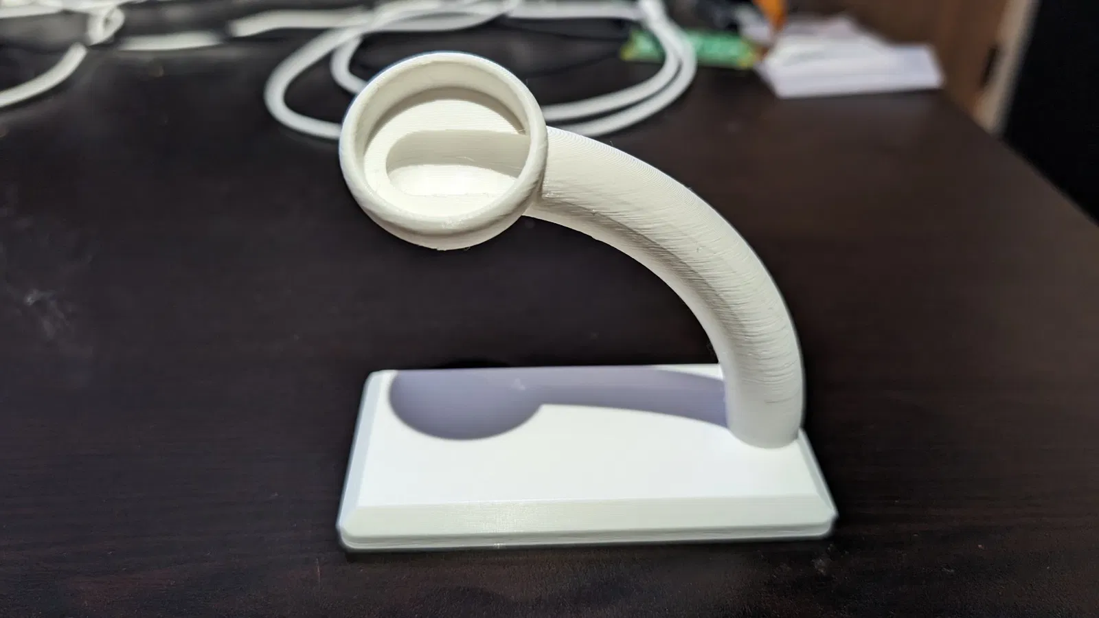Tôi khuyên bạn nên in giá đỡ ở vị trí thẳng đứng để đáy nằm trên đế. Bạn sẽ cần hỗ trợ dưới khu vực sạc cong chỉ để hỗ trợ trong khi in. Tôi thấy rằng hỗ trợ hữu cơ hoạt động tốt nhất.