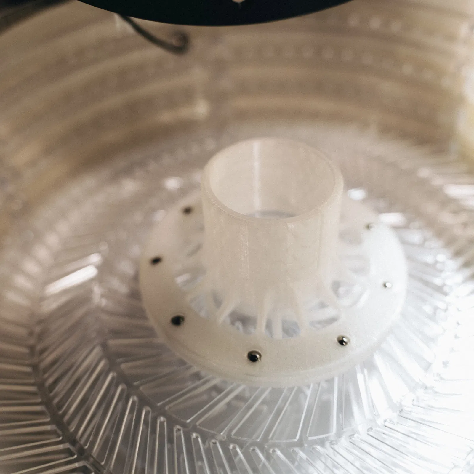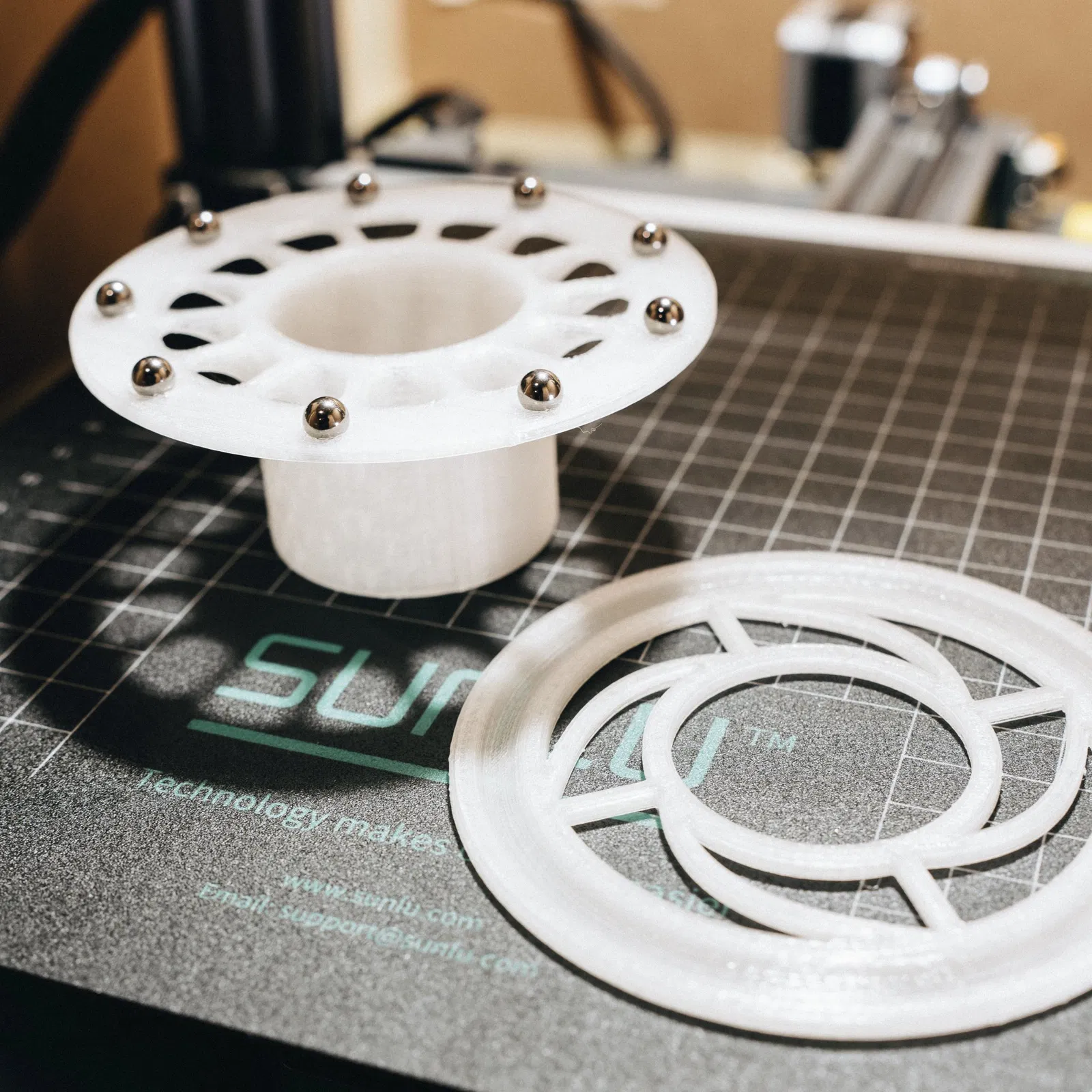 Đây được thiết kế để vừa vặn trên khay dưới của máy sấy Filament/Máy khử nước thực phẩm Commercial Chef (Westinghouse WFD100W). Chín viên bi ¼ inch lăn bên trong một rãnh cho phép cuộn dây nằm trên đó quay một cách dễ dàng. (thực sự, nó quay khá tốt mà không cần bi.) Gói 100 viên bi ¼ inch trên Amazon giá khoảng 8 đô la.