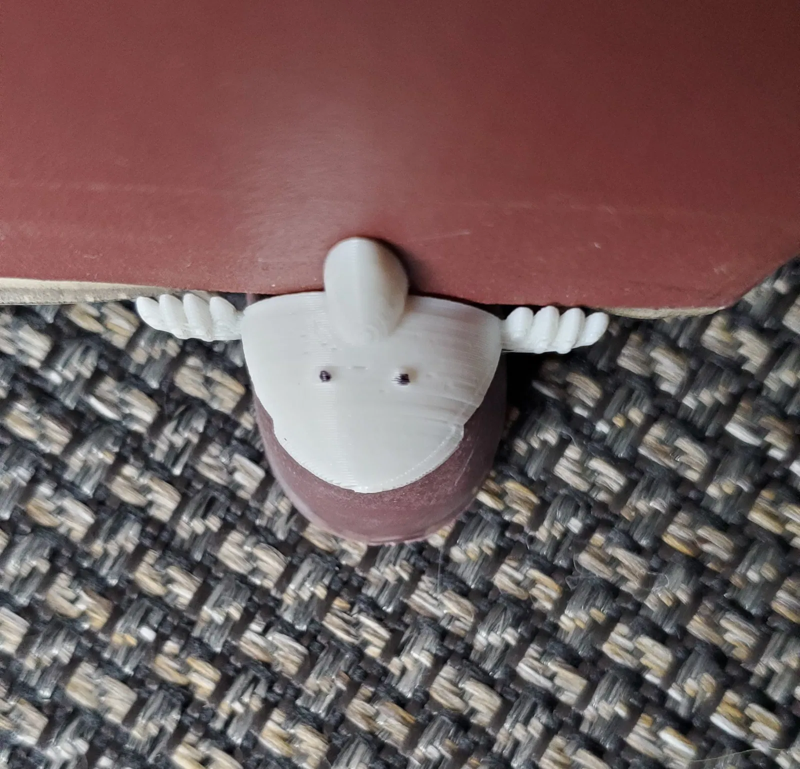 Sau đó, sử dụng một ít keo để gắn Kilroy vào cái chặn.