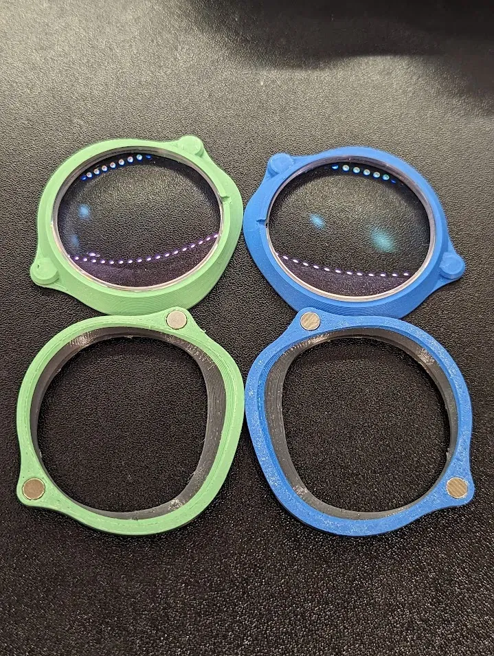 Tôi đã lấy mẫu clip Quest 3 từ: https://www.f3d.vn/3d-model/156790-khuon-gan-trong-kinh-cho-quest-3 Lấy giá đỡ ống kính từ: https://www.thingiverse.com/thing:5319065. Kết hợp chúng lại với nhau và tạo ra giá đỡ cho Quest 3, vì vậy nếu bạn đã in giá đỡ ống kính cho Quest 2 cho giá đỡ ống kính ở trên, bạn chỉ cần in cái này để sử dụng cùng ống kính từ tính trên Quest 3. Mô hình là cho mắt phải, hãy lật ngược để có mắt trái. FYI, tôi in bộ trái và phải với màu sắc tương ứng để biết mắt nào là mắt nào mà không cần phải ghi nhãn gì cả. Sử dụng cùng 5x2mm nam châm. Cũng bao gồm một mảnh ống kính bên phải đã được sửa đổi từ nguồn remix để trở thành một mảnh ống kính mỏng hơn. Nếu bạn cần tiếp tục sử dụng cùng một mảnh ống kính một cách thay thế với Quest 2, tôi cũng đã bao gồm một giá đỡ bên phải cho quest2 cao hơn nhiều để mảnh ống kính mỏng hơn không làm cản trở ống kính fresnel của quest 2. 10/24/23: Đã tải lên 20231024_ProperClipFit.stl. Điều này chứa mẫu cong từ nguồn remix in được và vừa vặn hơn nhiều, ít có khả năng bị gãy và bị tháo ngẫu nhiên. Khuyên bạn nên chà nhám bên clip vì các lớp sẽ không tạo thành vòng hoàn hảo và có các bước rõ ràng. Cũng điều chỉnh vị trí để gần khớp hơn với ống kính zenni PD 65mm. 10/25/23: Đã tải lên 20231025_AsThinAsItGets.stl. Nếu bạn có nam châm 5x1 mm thay vì 5x2 mm, bạn có thể in cái này để giảm độ dày hơn nữa.