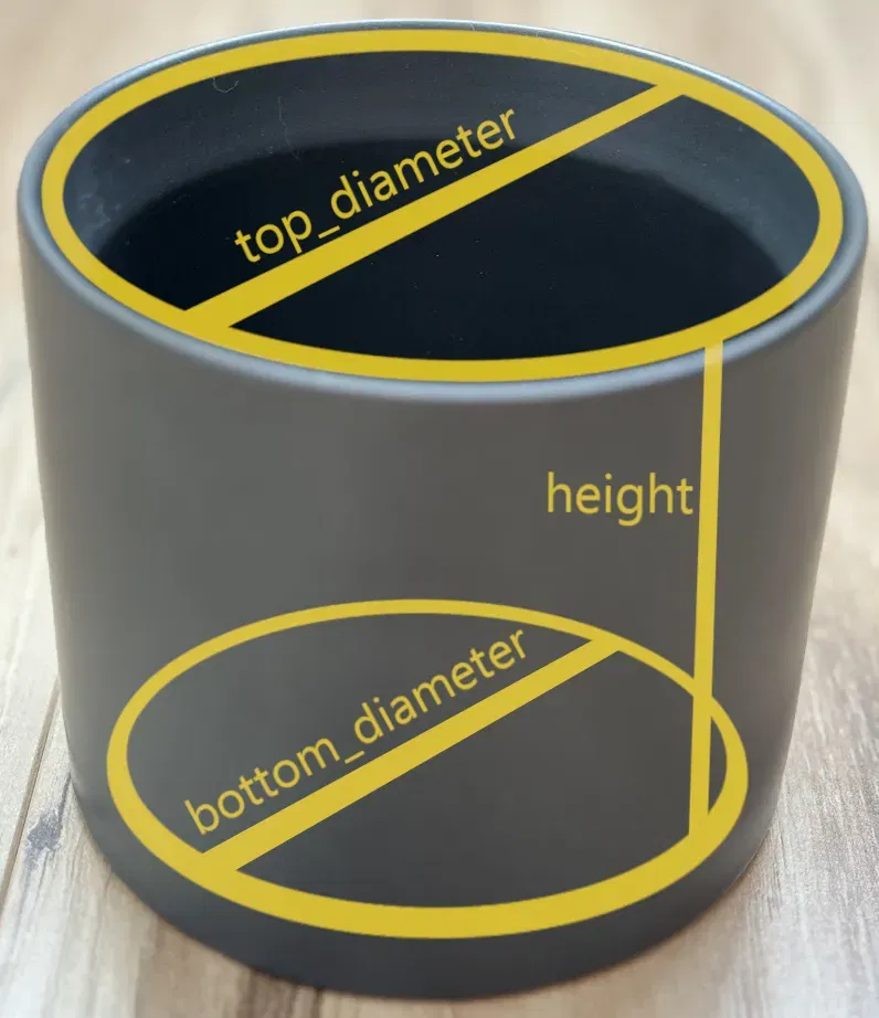 - Ngay cả khi chậu là hình trụ và không thu hẹp, hãy đặt đường kính_dưới nhỏ hơn khoảng 10mm so với đường kính_trên
