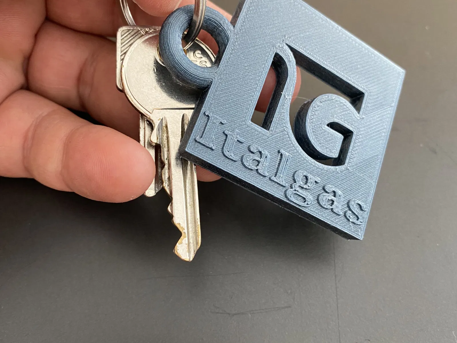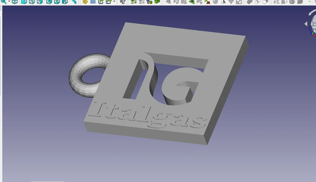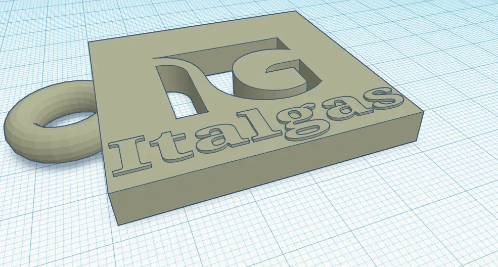 Keychain Italgas. Thiết kế đơn giản, không cần hỗ trợ, in 1 giờ. Chiều dài 65mm (với vòng), chiều rộng 50mm, chiều cao 6,5mm