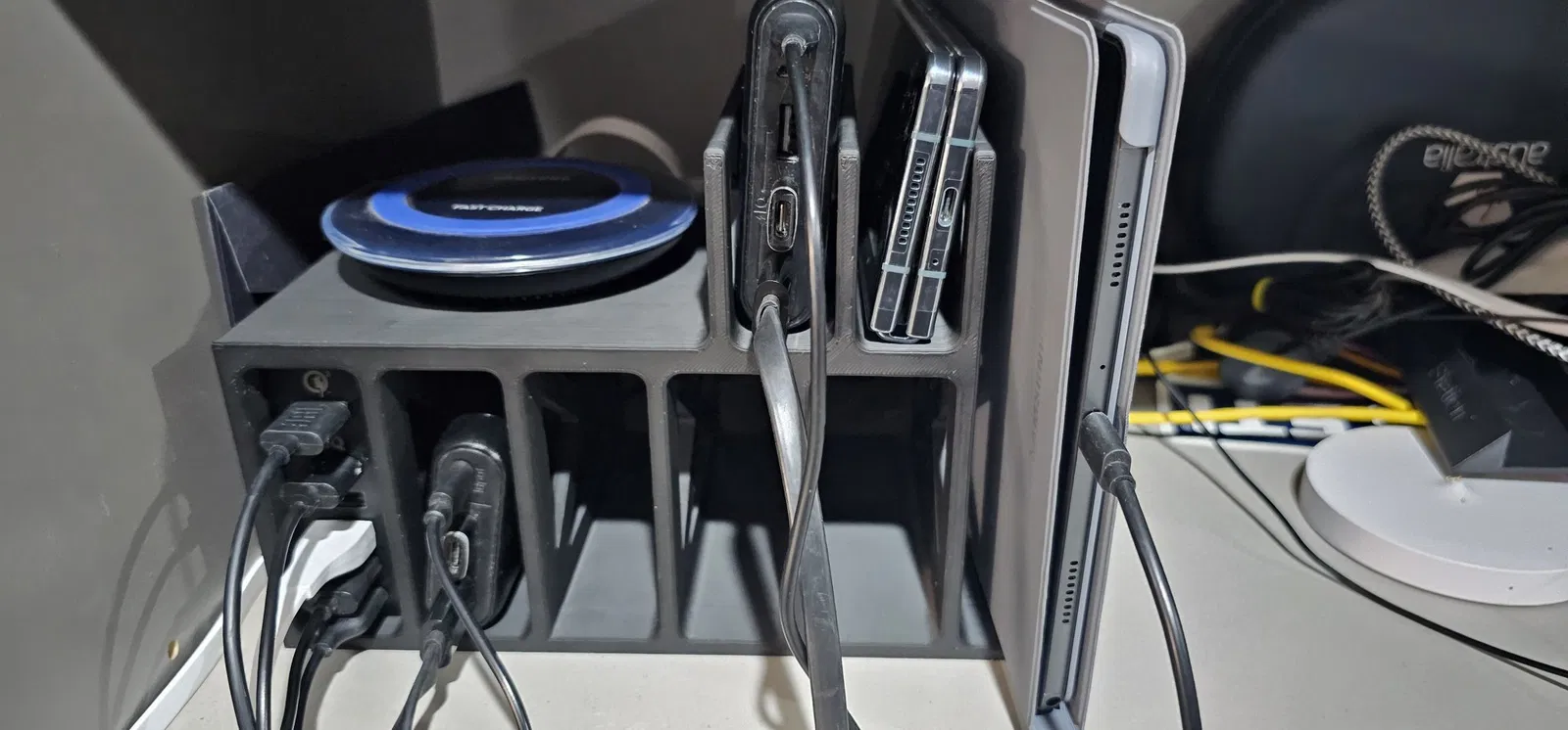 Trạm sạc được thiết kế cho bộ sạc cổng Anker 6 để chứa cả điện thoại pin và máy tính bảng