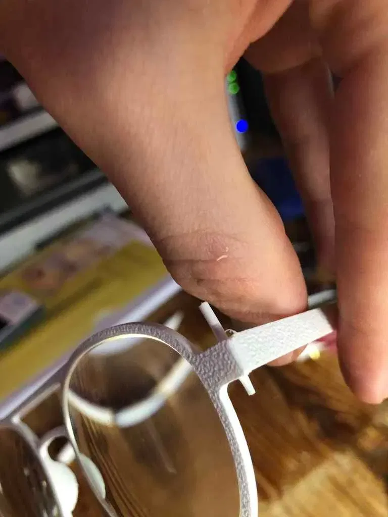 3d in khung cho kính của tôi, in phẳng, không cần hỗ trợ, bản lề hoạt động với một mảnh filament nhỏ và một khớp chặt.