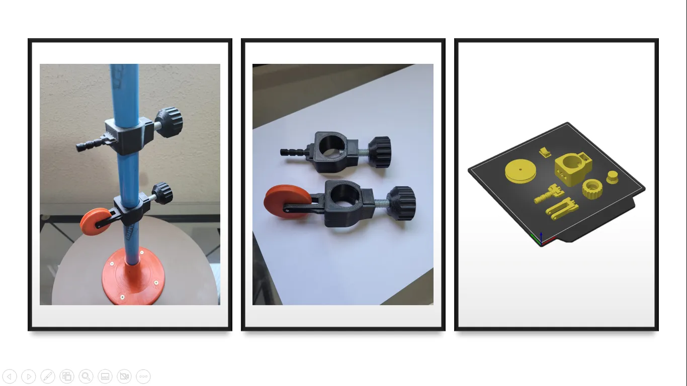 Mufas cho các thực hành trong phòng thí nghiệm vật lý hoặc hóa học. Đây là cái tôi đã sử dụng cho thực hành “Bàn lực” nghiên cứu các vectơ. Có hai mufas, một cái giữ động lực kế, và cái kia có một ròng rọc để kéo một sợi dây nối bàn với động lực kế. Tôi đã tách thành ba phần, phần chính và hai phụ kiện để được ghép và dán bằng epoxy, hoặc araldite (keo hai thành phần). Tôi đã tách thành các phần, vì khi in toàn bộ mảnh thì luôn gặp lỗi, và in riêng rẽ đã giải quyết được vấn đề. Vật liệu cần thiết sẽ là một đinh ¼" với đai ốc, và một trục như một dây kim loại, kẹp giấy hoặc cái gì đó được sử dụng như một phần gia cố trong một trong các mảnh, và cho trục của ròng rọc trong hình. Các phần khác: Cánh tay đòn: https://www.f3d.vn/3d-model/134961-mesa-de-forcas-canh-tay-don Động lực kế: <> Móc và các phần khác: https://www.f3d.vn/3d-model/51956-gia-do-gancho-va-anel-cho-thuc-hanh-mesa-de-forcas