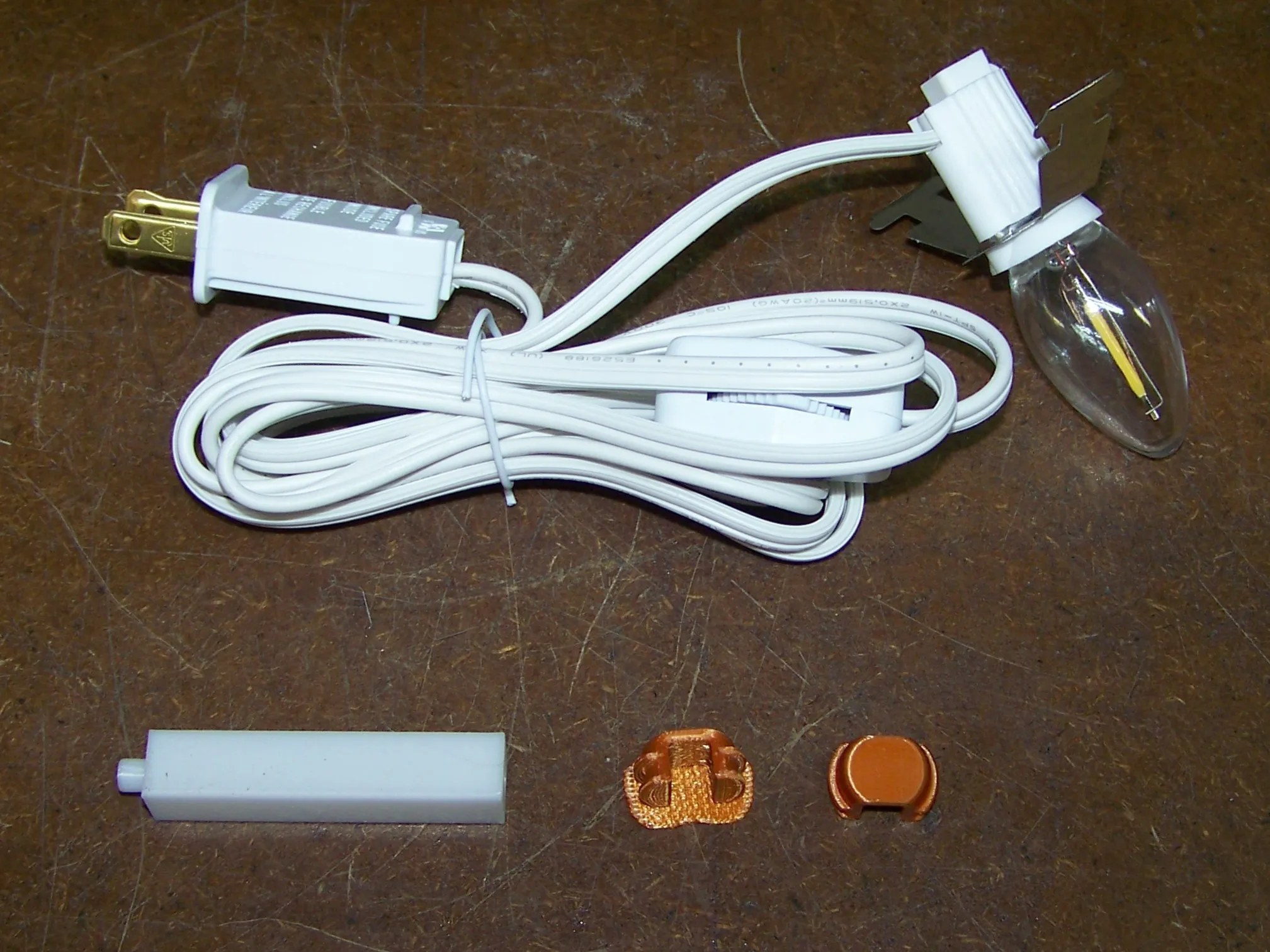 Các phần trên và dưới ghép lại với nhau bằng các tab. Không cần keo. Sau khi in, hãy cạo các tab để loại bỏ các mảnh filament thừa và xung quanh lỗ trên phần liền kề. Đây là một sự khớp chặt. Rãnh ở đáy giúp dễ dàng nắm và kéo đệm ra. Có một kẹp giữ dây phù hợp với bất kỳ lỗ hex nào. Raft được đề xuất cho kẹp (trong hình). Đèn cho nó được mua từ Amazon. Tôi đã mua hai cái với giá 6.00 đô la, tuần sau tôi định mua hai cái nữa, nhưng chúng đã tăng lên 10.00 đô la. Tôi sau đó đã mua bốn cái với giá 15.00 đô la. Đây là kẹp đế E12 cho đèn Giáng sinh. Chúng bao gồm một dây dài sáu foot và phích cắm, ổ cắm, công tắc, kẹp và bóng đèn LED. Tôi có một đơn vị sử dụng bóng đèn sợi đốt công suất thấp. Nhiệt độ dễ dàng chảy qua các lỗ mà không làm nóng và biến dạng nhựa.