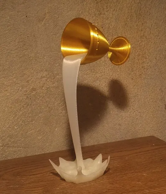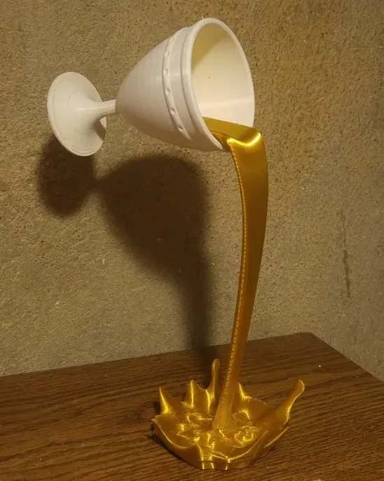 Đây là một bản remix của "Tượng Cốc Nổi" của HappyMoon (và bản remix của tôi để dễ in và lắp ráp), được thực hiện với một chiếc cốc thay vì một cốc cà phê đang tràn. Nó được lấy cảm hứng từ một bài đăng "Make" của deniorsDesign (https://www.thingiverse.com/make:681665), trong đó cà phê của "Cốc Nổi" được làm bằng một loại filament lụa vàng. Lụa vàng đặc biệt làm nổi bật dòng chảy của chất lỏng, và tôi nghĩ nó sẽ trông thú vị khi rơi từ một chiếc cốc theo phong cách Phục Hưng. Các loại filament 'lụa' khác (bạc, trắng, đồng) cũng có thể trông đẹp.
