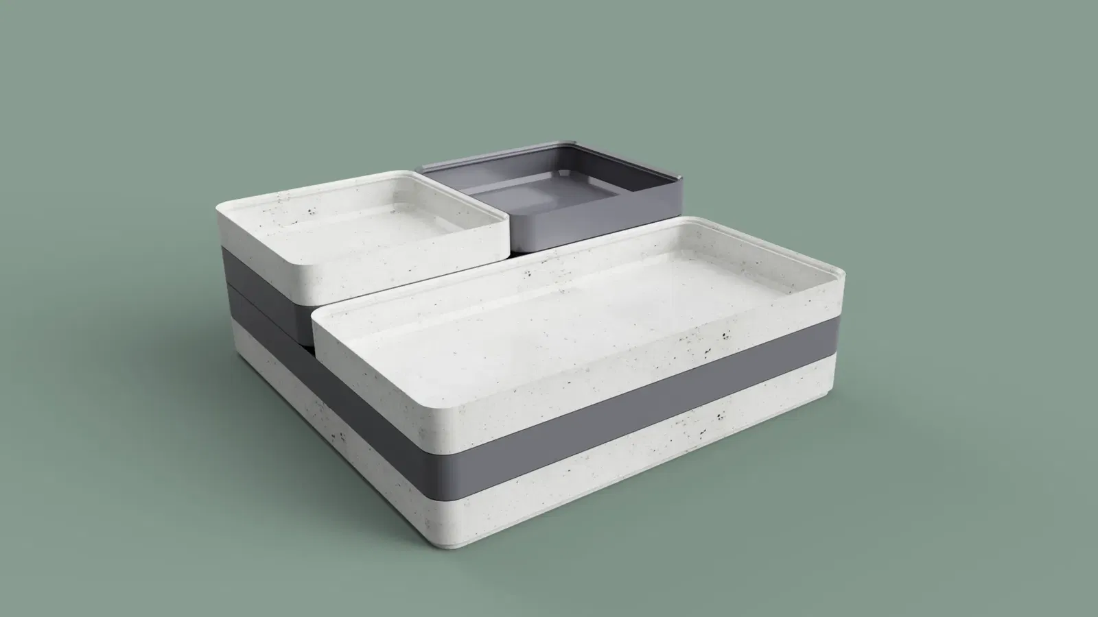 Một tập hợp các khay có thể xếp chồng lên nhau với 3 kích thước cho tất cả các nhu cầu sắp xếp và lưu trữ của bạn.