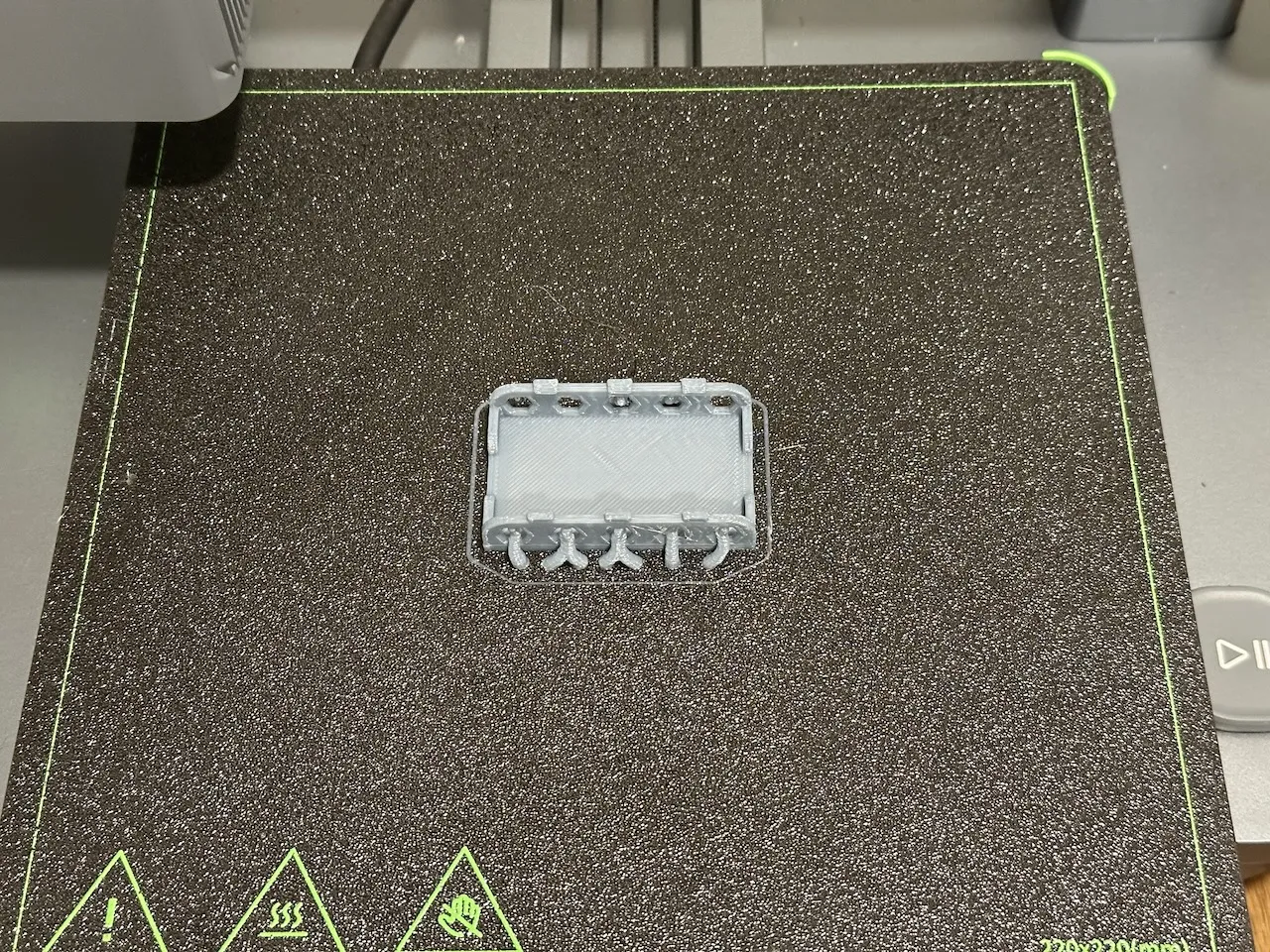 In trên một AnkerMake M5C-B sử dụng Hatchbox GreyBlue PETG với các thiết lập sau: vòi phun 0.4mm, lớp 0.3mm, độ đầy 100%, hỗ trợ cây, tốc độ x10. Đã sử dụng ~8g filament và hoàn thành trong 20 phút 45 giây.