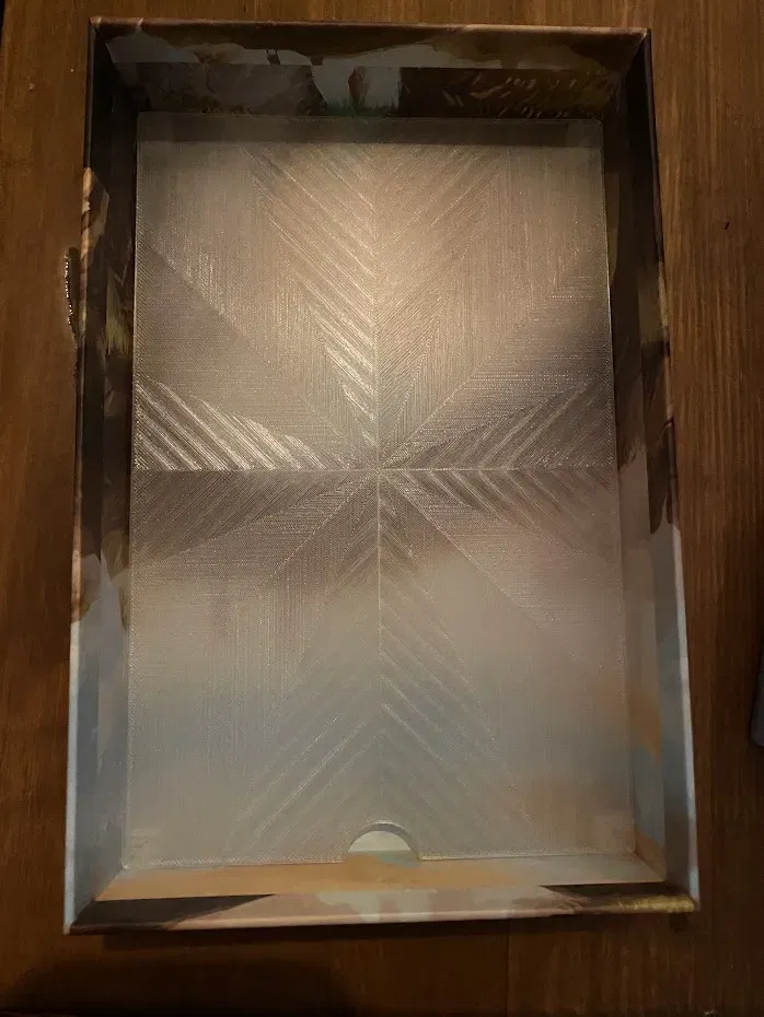 In bằng ‘Clear’ PLA 0,2mm 20% với một lớp trên và dưới đẹp mắt từ Prusaslicer để tăng thêm phần sang trọng.