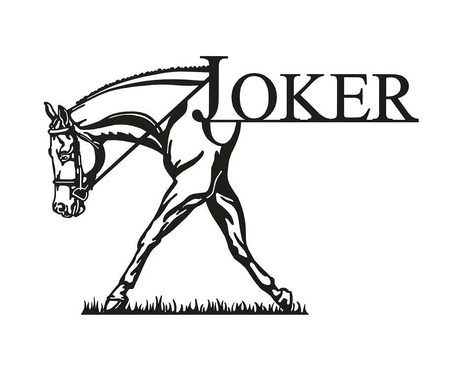 Ngựa Joker đi trên cỏ với biển tên nghệ thuật