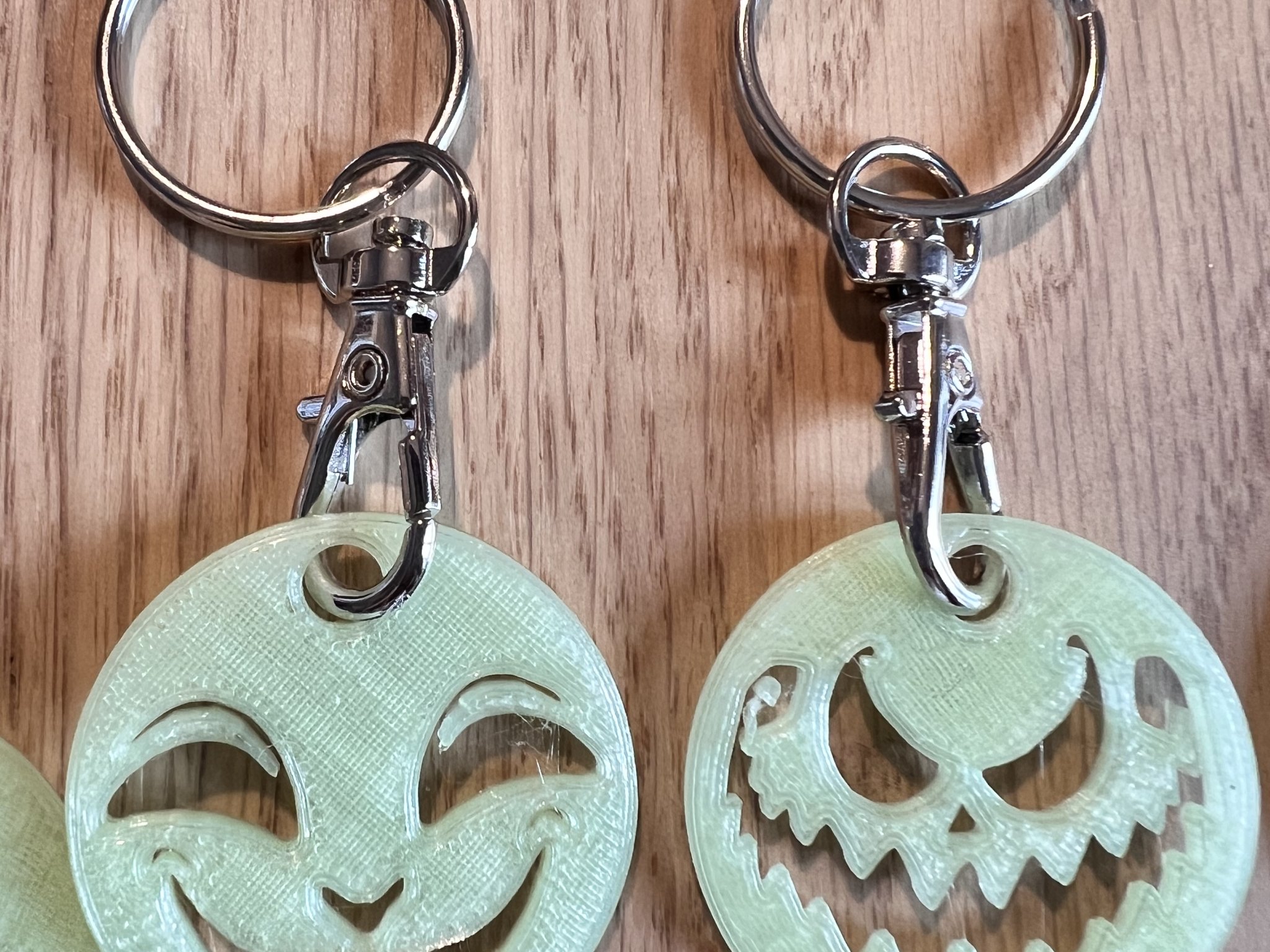 Những khuôn mặt nhỏ đáng sợ, có thể được tặng làm móc khóa hoặc mặt dây chuyền cho Halloween.