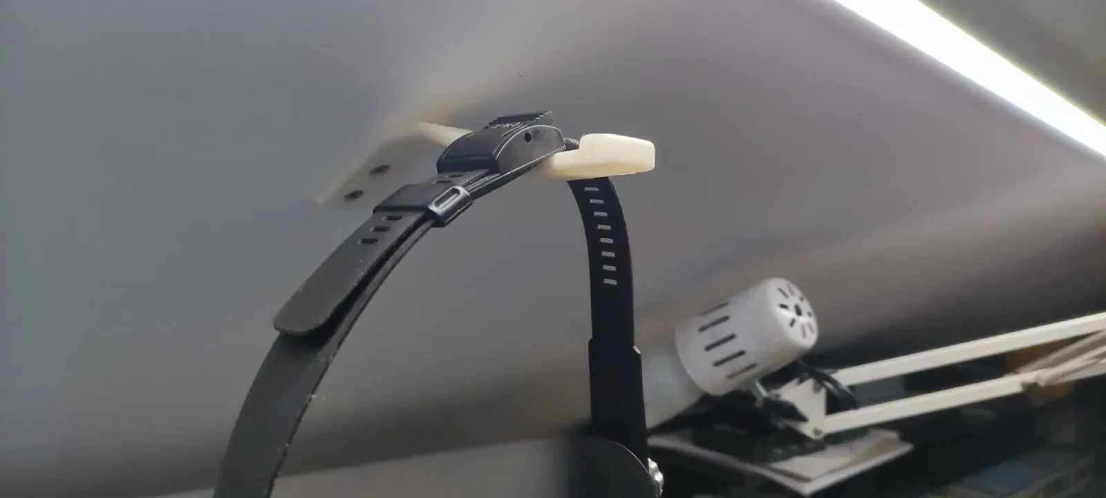 Đây là một hỗ trợ tai nghe được gắn trên một bức tường nghiêng.
