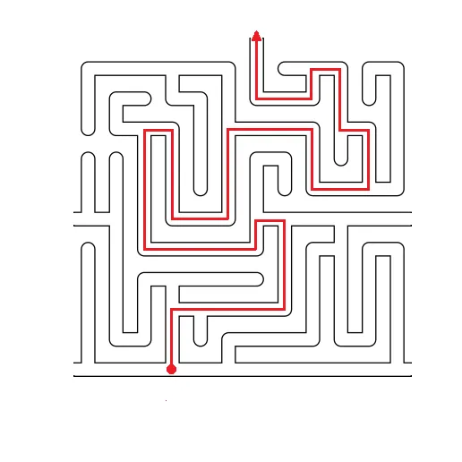 Tôi đã sửa đổi mê cung thường được hiển thị ở đây và làm cho nó khó hơn một chút, đặc biệt là ở phần đầu với một vòng liên tục. Hình dạng này tất nhiên có thể được sử dụng làm cơ sở cho các mê cung của riêng bạn.