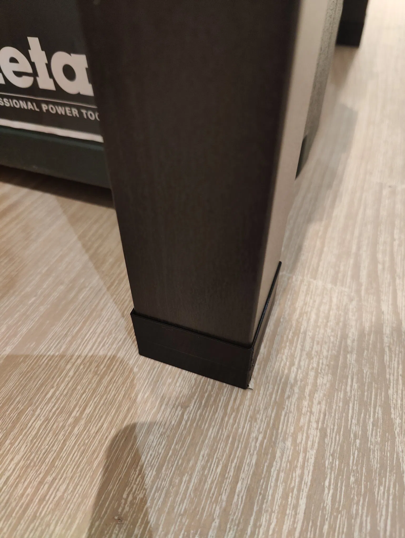 Một số giày cho bàn IKEA Lack của chúng tôi để giảm thiểu sự truyền rung động từ bàn có máy in xuống sàn.