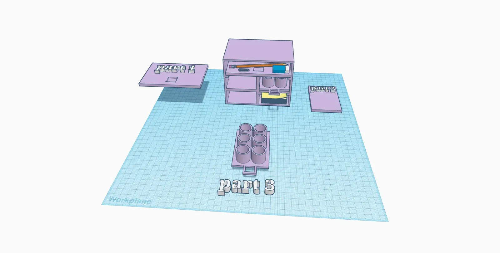 Holder cho thiết bị vẽ. Bạn có thể đặt nó trên thiết bị để tô màu, chẳng hạn như bút chì, sơn, bút và nhiều hơn nữa. Ở trên, trong hình ảnh có phần 1 có thể được chèn vào và lấy ra bằng cách đặt ngón tay của bạn vào lỗ trên phần đó, và đẩy nó ra ngoài/vào trong, và bạn có thể đặt mọi thứ vào đó. Tương tự với các phần 2+3: các phần bạn có thể lấy ra và đặt vào, phần 3 có lỗ nơi bạn có thể đặt sơn. Dưới phần 2 có phần 3, đây là giải pháp cho vấn đề thường yêu cầu chúng ta sử dụng một công cụ để đặt màu vào: ở cuối khi bạn hoàn thành thì rất khó để với tới đáy của lọ sơn và làm sạch nó. Đó là lý do tại sao có phần 3 dưới phần 2. Đặt phần 3 dưới phần 2, và khi bạn hoàn thành việc vẽ, hãy lấy phần 3 ra và rửa sạch! Và mọi thứ sẽ giữ sạch sẽ. (Để di chuyển phần 2, bạn cần đặt một ngón tay dưới phần đó (có một lỗ ở đó) và đẩy ra ngoài/vào trong.)