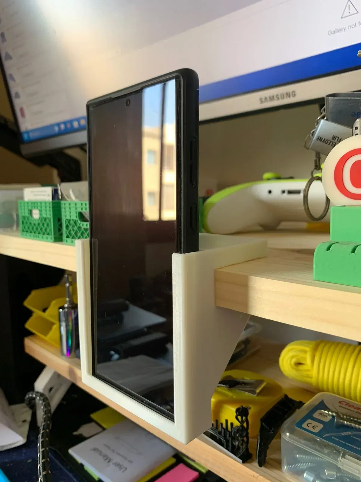 cần một giải pháp đơn giản để giữ chiếc Samsung Galaxy S22 Ultra của tôi trên giá đỡ màn hình tự làm. Không tìm thấy gì thỏa mãn, vì vậy tôi nhanh chóng sử dụng fusion360 để tạo ra một giá đỡ đơn giản.
