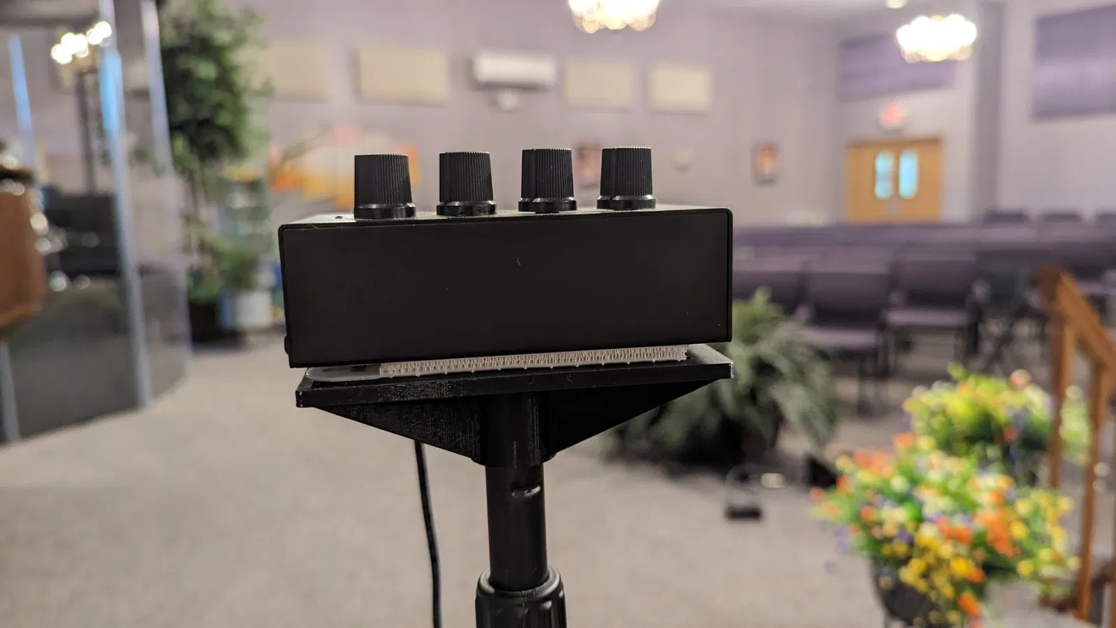 Chúng tôi đã cập nhật nhà thờ của mình để sử dụng tai nghe in ear, nhưng không có bảng điều khiển kỹ thuật số để có một aux cho mỗi người, và tôi đã nảy ra ý tưởng này. Sử dụng Behringer MA400 như một mix cá nhân phần nào cho các nhạc cụ. Sau đó là Mackie HM-4 cho các ca sĩ nền. Mặc dù cần một cách để gắn cả hai thiết bị này, và tôi đã làm điều này.