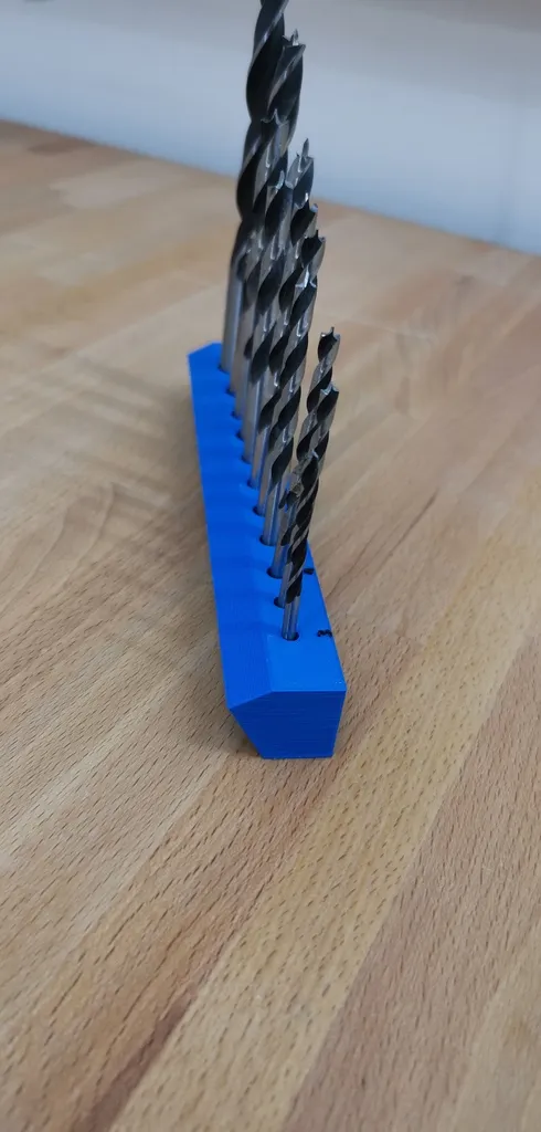 Wanted to have a home for my wood drill bits, ranging from nr 3 to 10 (3, 3.5, 4,4.5, 5, 5.5, 6, 6.5, 7, 8 and 10)