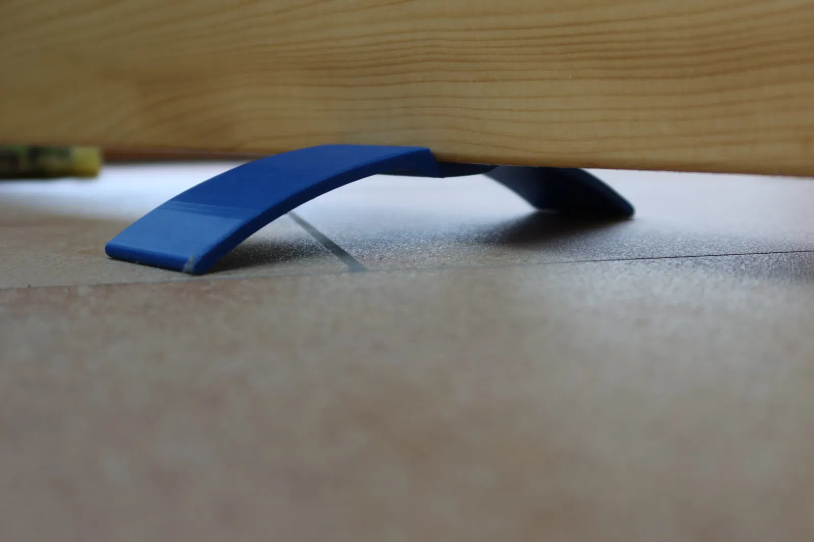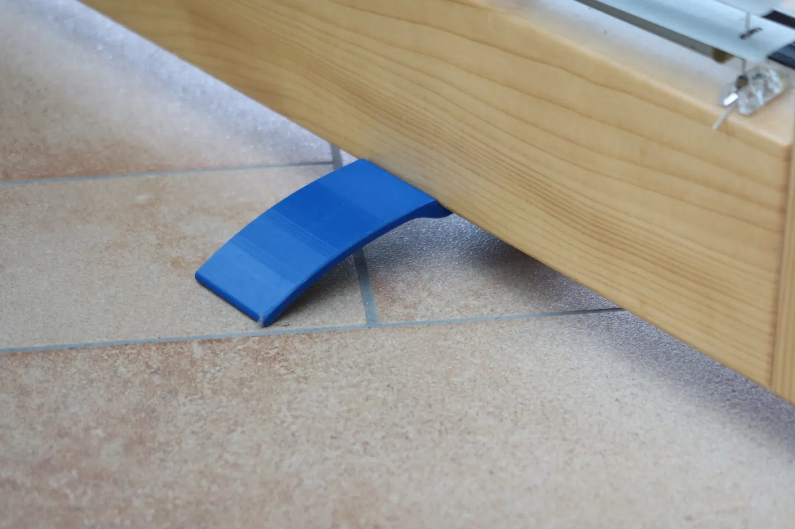 Vì vậy, tôi đã nghĩ ra giải pháp với vòng cung kẹp. Cửa tự kẹp mình bằng trọng lượng của chính nó vào sàn nhà.