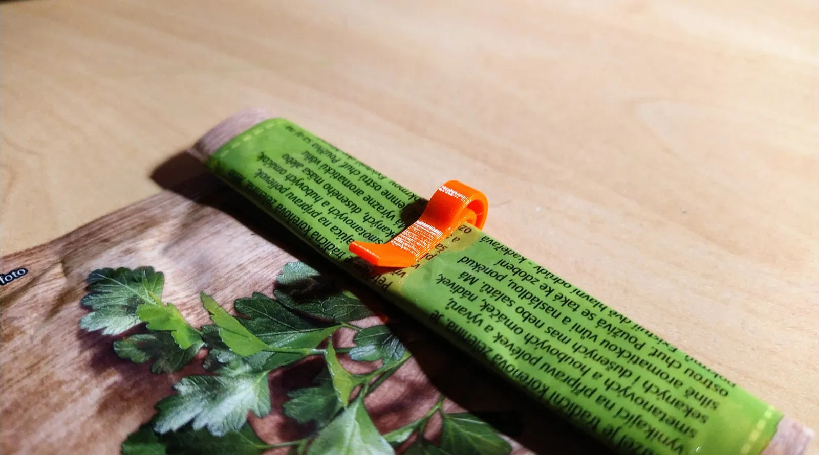 Một cái kẹp túi cho túi gia vị và các túi khác.