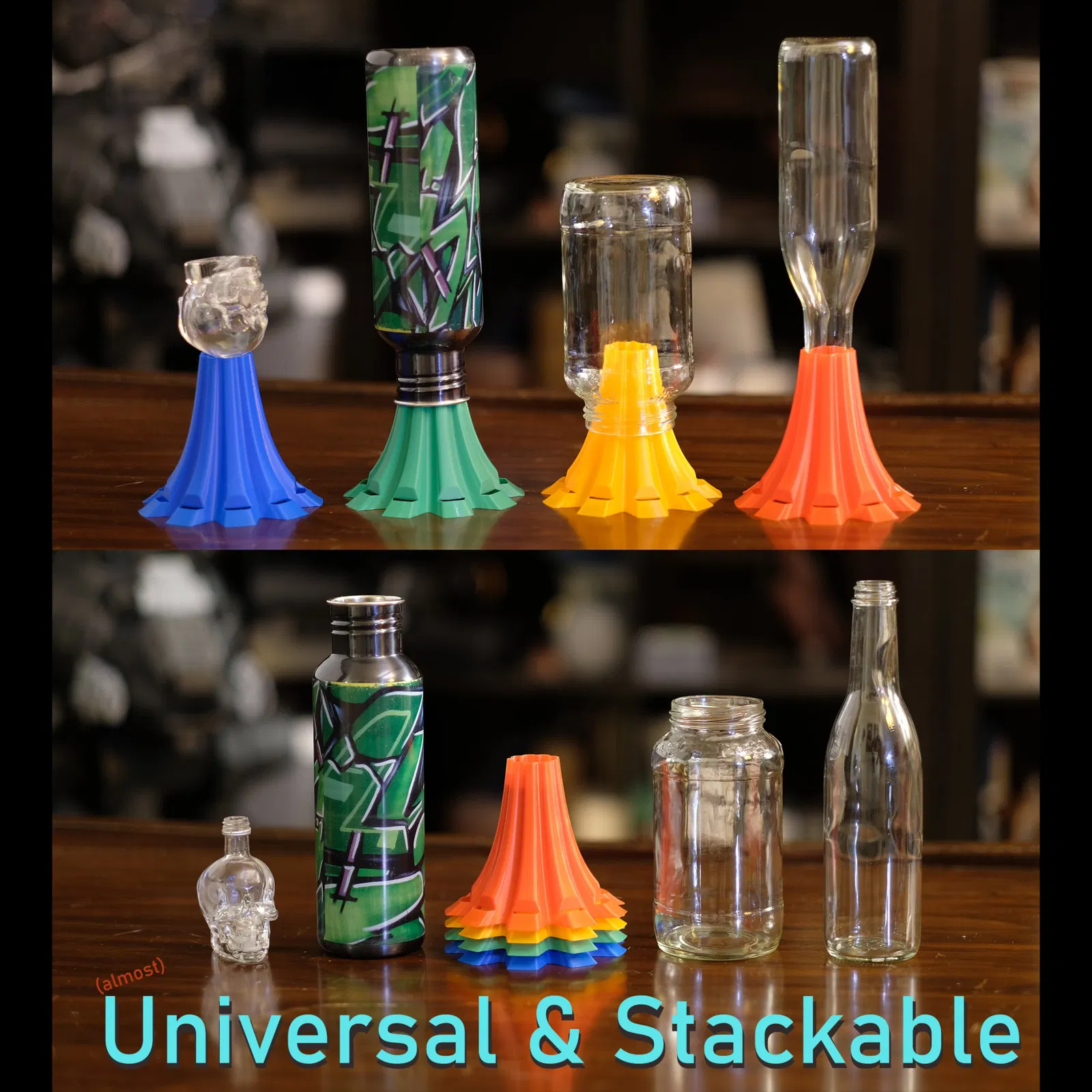Một chai sấy khô/bình/thủy tinh/máy lắc/máy lắc có thể xếp chồng lên nhau và chế độ bình có thể in.