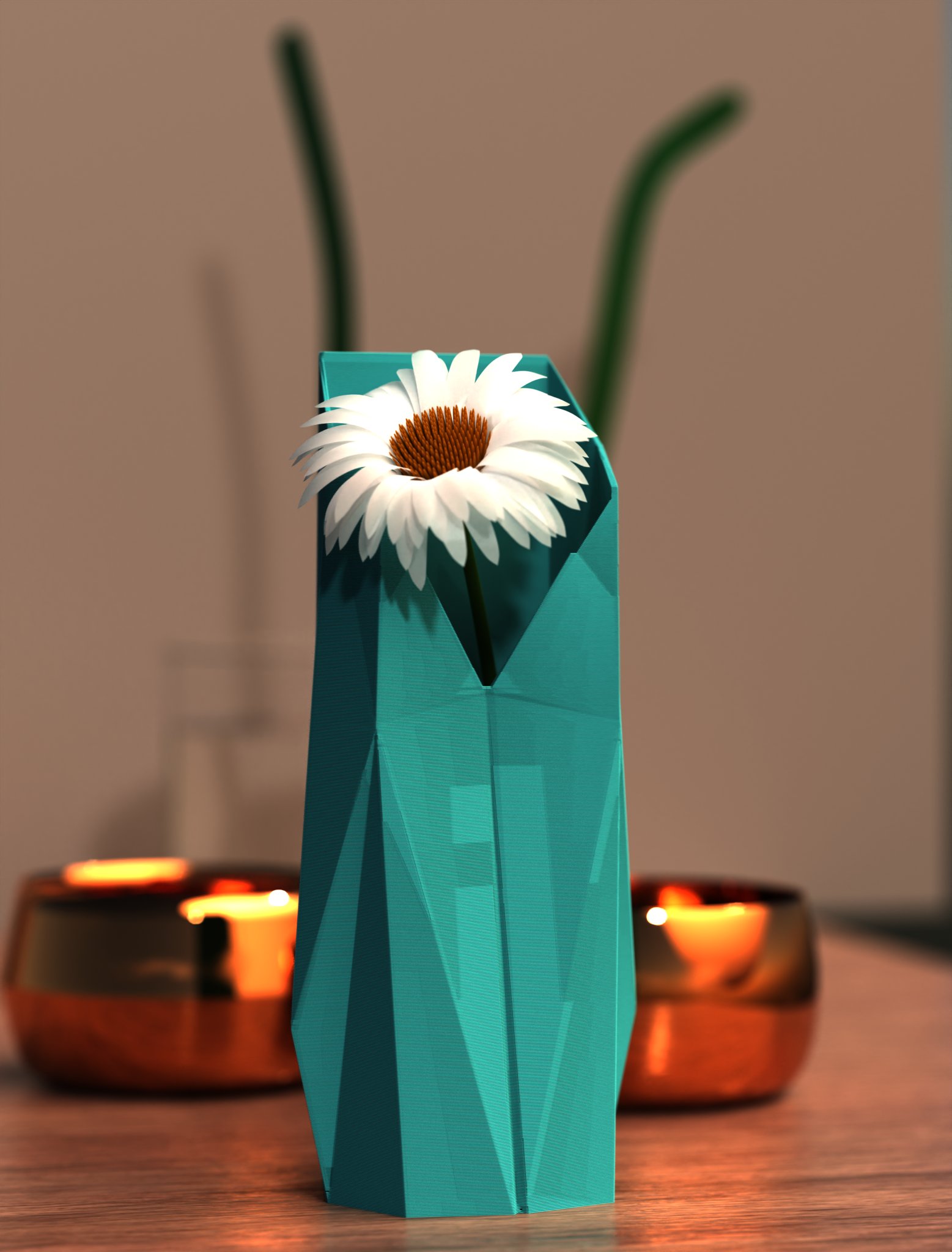 Bình hình học thấp poly mà tôi thiết kế trong Blender. Có rất nhiều cái như thế này đang được thực hiện, vì vậy hãy kiểm tra tài khoản của tôi để biết thêm. Tôi đã chọn một hình chữ V cắt ở phía trên với thiết kế này.