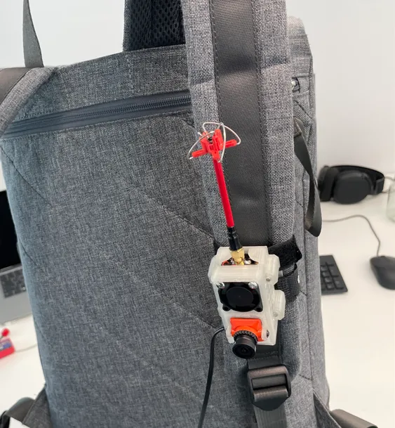 Nó có thể được gắn vào dây đeo của ba lô hoặc một cột để tạo ra một thiết lập camera fpv phát trực tiếp/giám sát di động hoặc cố định. Nó được cấp nguồn bằng một bộ pin bên ngoài.
