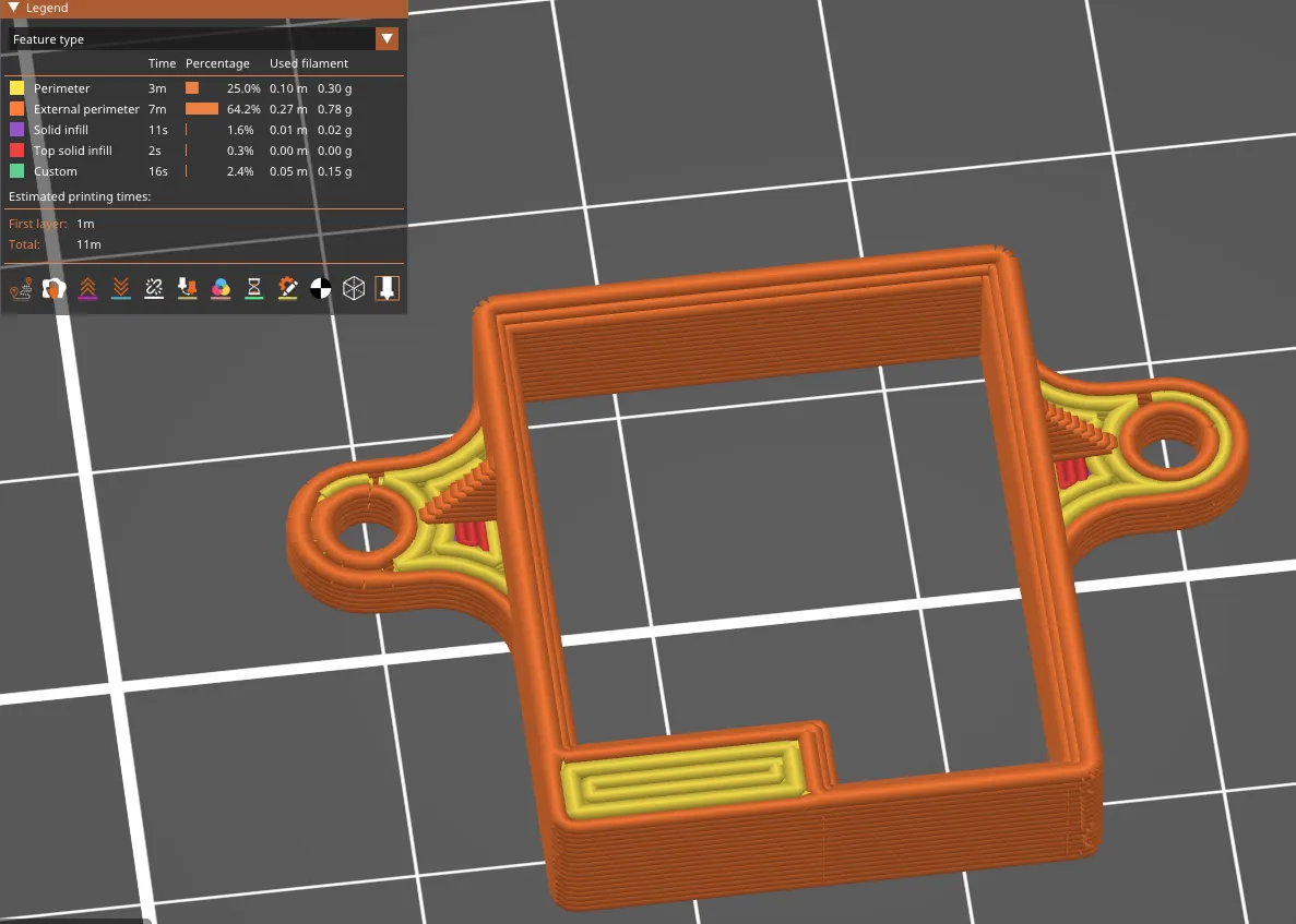 Cái này vừa khít vào hai ốc vít M2 ở phía trên gần phía trước của tấm trên, cách nhau 32mm. Các lỗ gắn là dày 1. 6mm và các ốc M2X8 là đủ. Kích thước của phần là 30mm, mở rộng ra 32mm khi đặt mô-đun GPS vào bên trong giá đỡ thông qua một sự phù hợp can thiệp. Do thiết kế và độ khít, đây vẫn đang trong quá trình hoàn thiện để tinh chỉnh thiết kế, tuy nhiên nó vẫn sẵn sàng để sử dụng. Tôi đã in bằng PRILINE TPU, vật liệu này cứng hơn một chút so với Overture với kích thước vòi phun 0. 6mm. Kích thước 0. 4 được kỳ vọng sẽ hoạt động tốt và loại bỏ các khoảng trống nhỏ mà vòi phun 0. 6mm tạo ra. Động lực cho điều này là vì có những giá đỡ khác cho các nhà sản xuất GPS khác nhưng không có cái nào cụ thể cho bộ Walksnail đầy đủ.