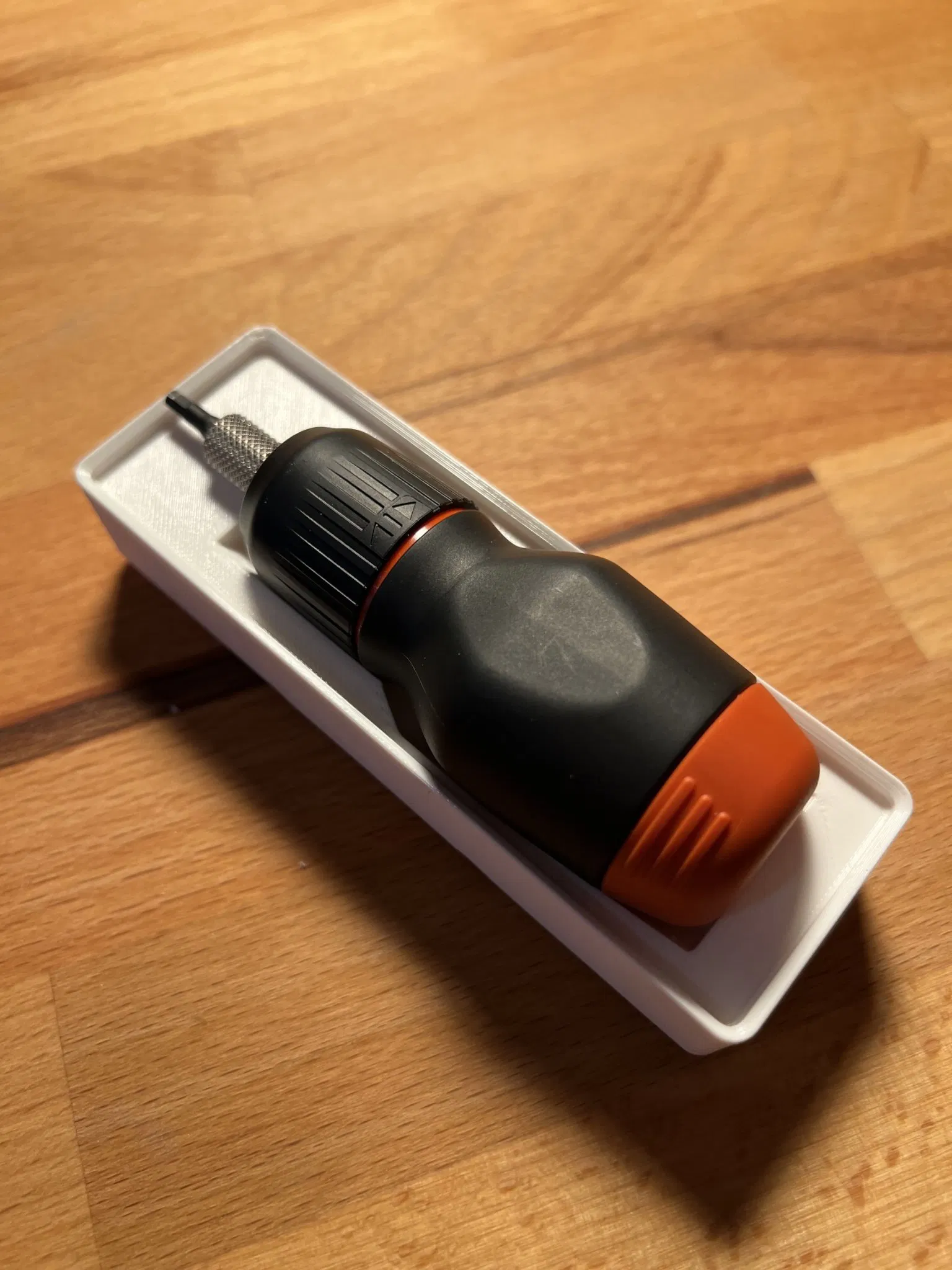 Người giữ tua vít ngắn Gridfinity LTT. Thiết kế rất cơ bản cần một chút công sức để thực sự tốt hơn, nhưng nó hoạt động đủ tốt.