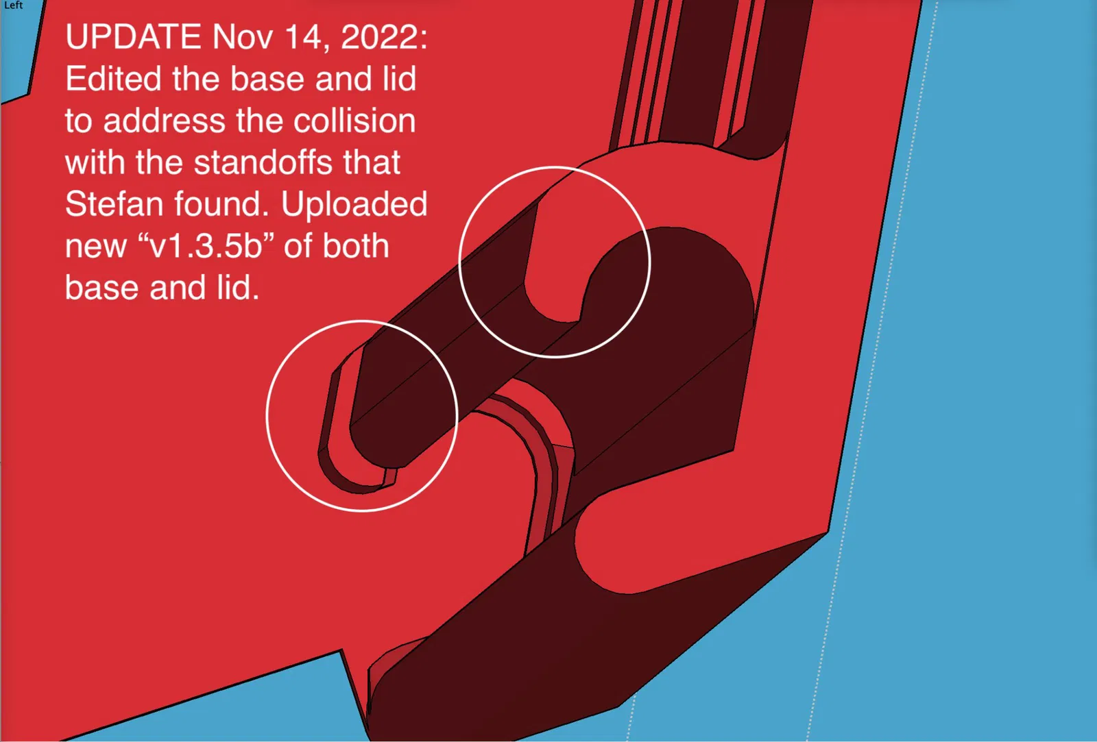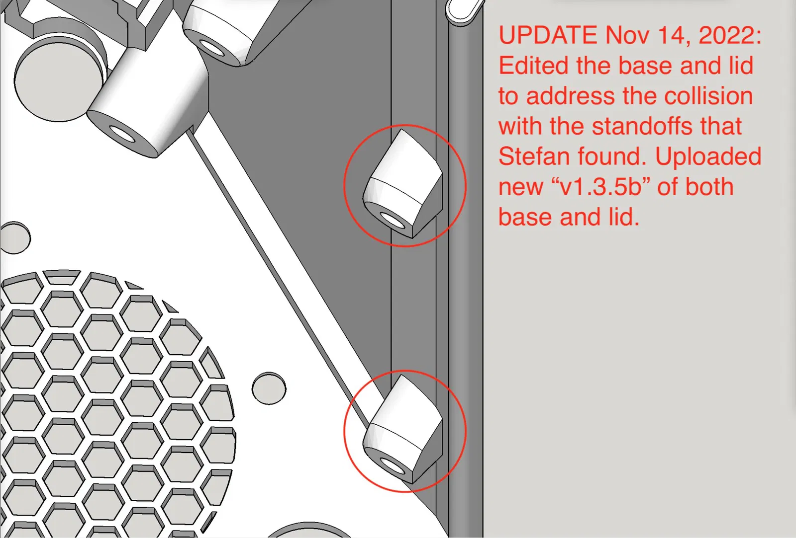 - Ngày 14 tháng 11 năm 2022, 3:45 chiều: Đã chỉnh sửa đáy và nắp để giải quyết va chạm với các chân đế mà Stefan đã phát hiện. Tải lên “v1.3.5b” mới của cả đáy và nắp.