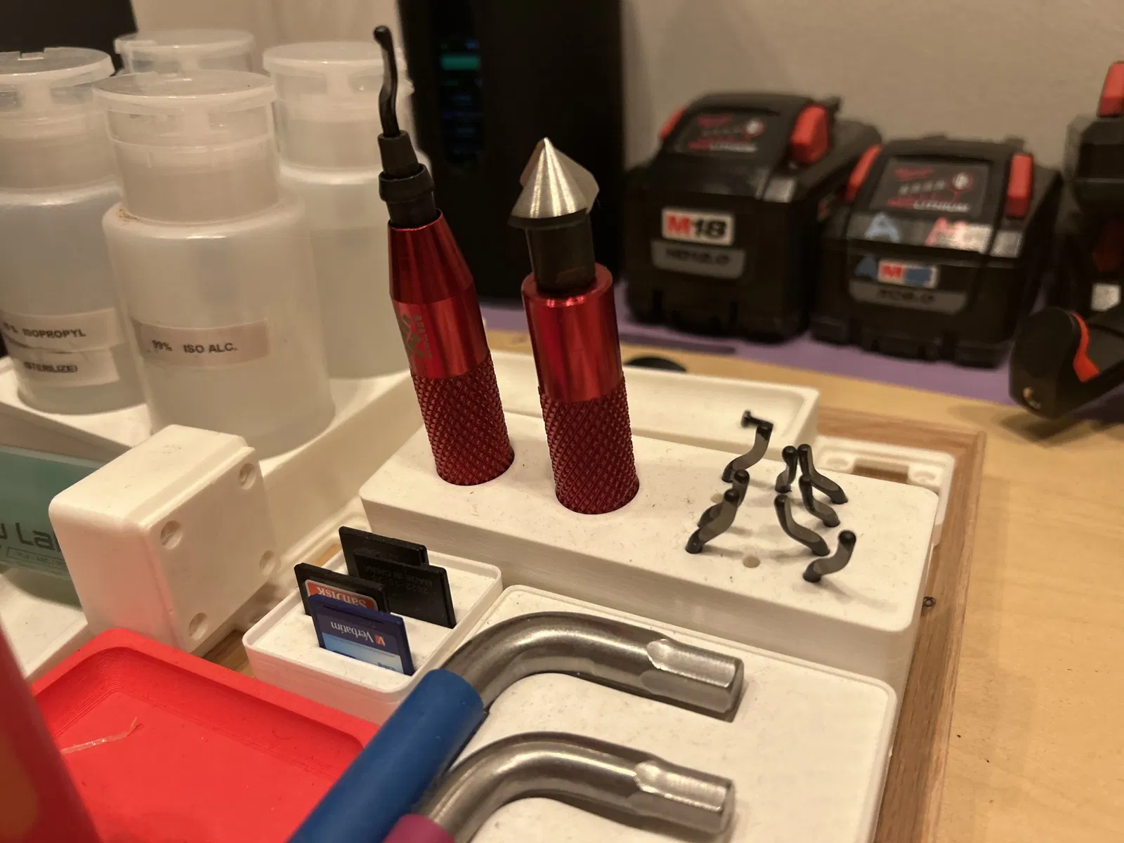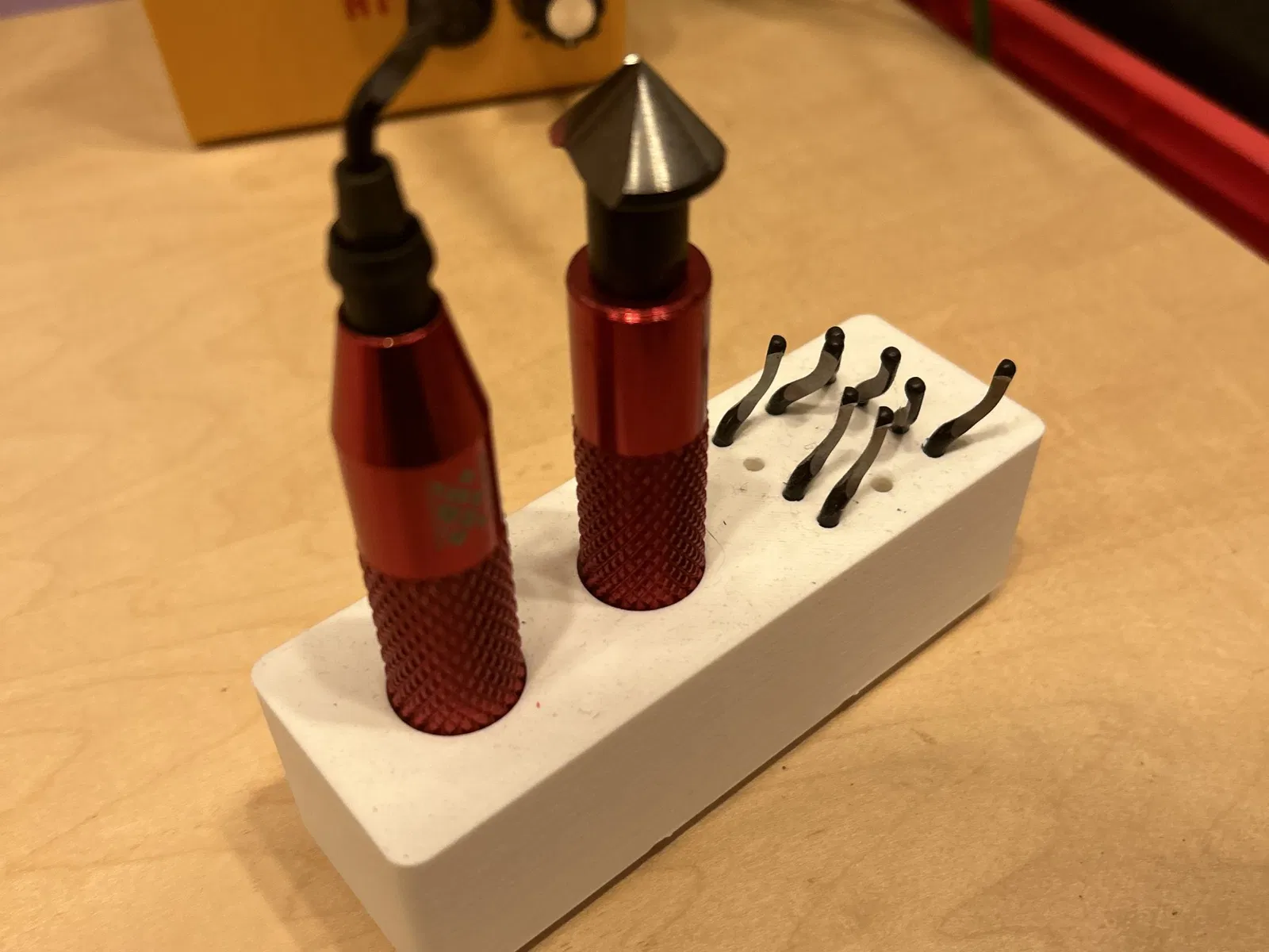 Giá đỡ đơn giản cho bộ dụng cụ kim loại Afa để làm mịn, cũng phù hợp với một số đầu thay thế. Những cái khác tôi đã tìm thấy thì quá chật, thiết kế này tạo đủ không gian trong khi vẫn giữ chúng cảm giác chắc chắn.