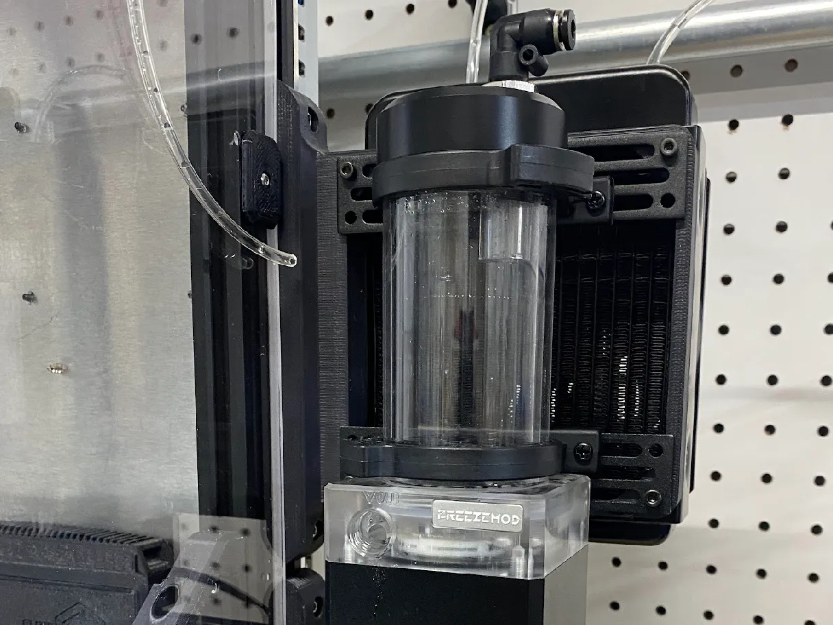 Đã làm cái này để gắn một bộ làm mát bằng nước mua từ Amazon/generic vào bên hông của vzbot của tôi. Nó đã được gia cố để bạn có thể treo bể, bơm, quạt và bộ tản nhiệt trên cùng một giá mà không ảnh hưởng đến luồng không khí hoặc rung quá nhiều.
