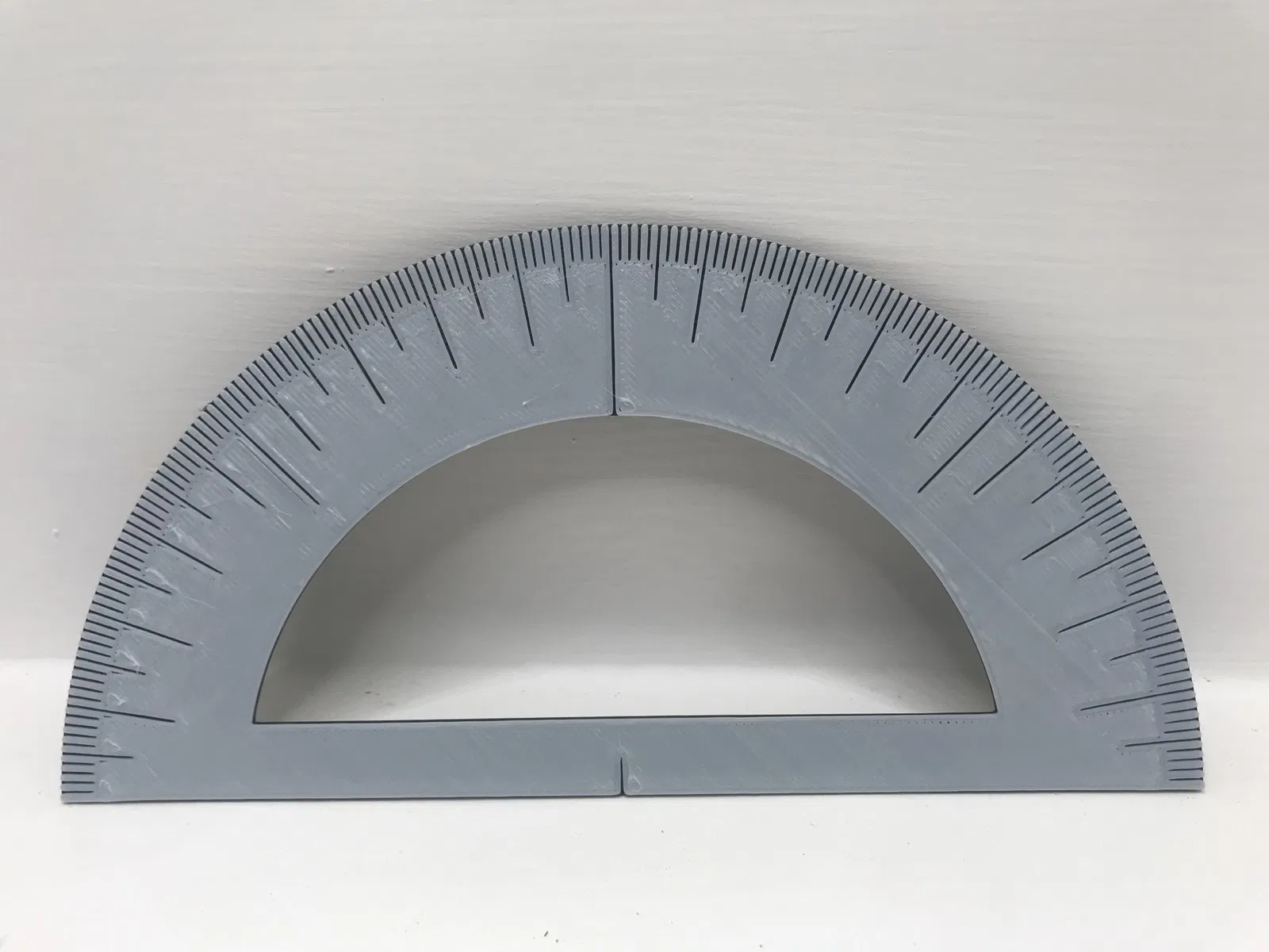 Đây là một thước đo góc theo độ. Nó có các dấu hiệu tăng dần về chiều dài mỗi 1, 5, 10, 45 và 90 độ.