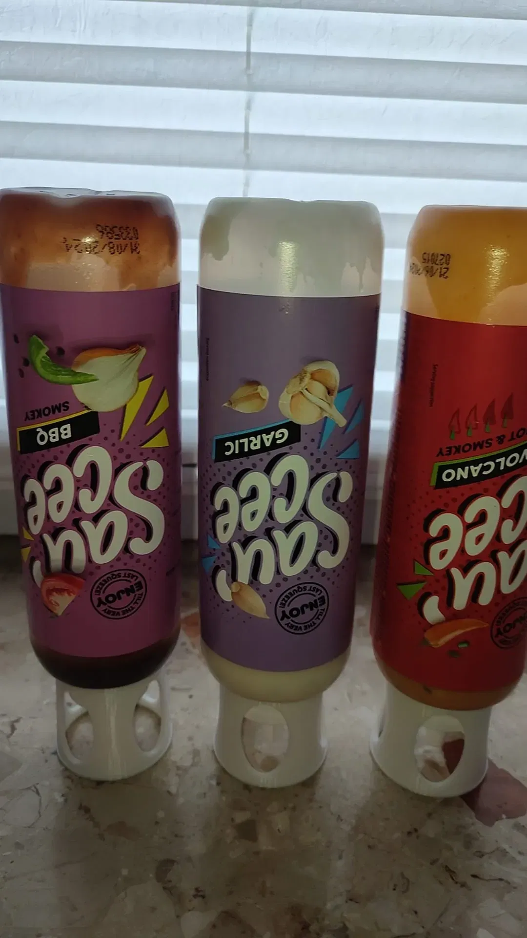 Mir đã làm tôi khó chịu vì tôi không lấy được tất cả từ những chai Sau'cee, vì vậy tôi đã thiết kế những giá đỡ chai này.