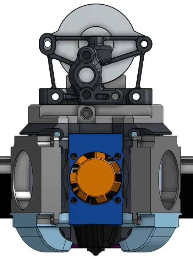 Toolhead được tạo ra cho Zero G Mercury 1.1.5 của tôi, thường sử dụng hệ thống EVA2.4, tuy nhiên với quạt được đặt ở phía sau của tool head, quạt sẽ va vào các động cơ ab nếu bạn muốn có hơn một quạt làm mát phần sau. Mantis giải quyết vấn đề này bằng cách đặt quạt ở phía trước, tuy nhiên tôi lại mất chuyển động y do thực tế là toolhead hoàn toàn nằm ở phía trước của quá trình ép. Hy vọng rằng đây sẽ là tool head phù hợp cho thiết lập của tôi và của bạn.