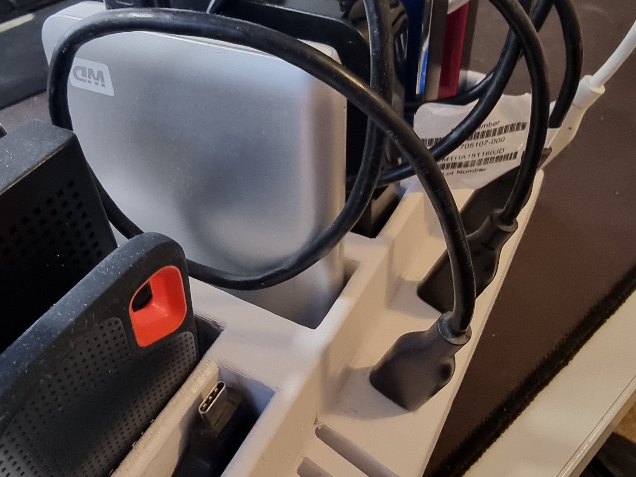 Mỗi ổ cứng có một chỗ bên cạnh để cắm cáp USB vào.