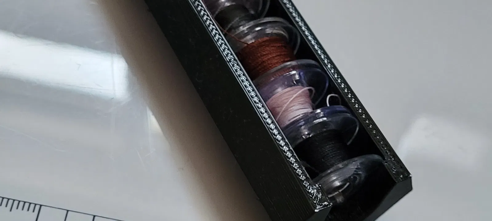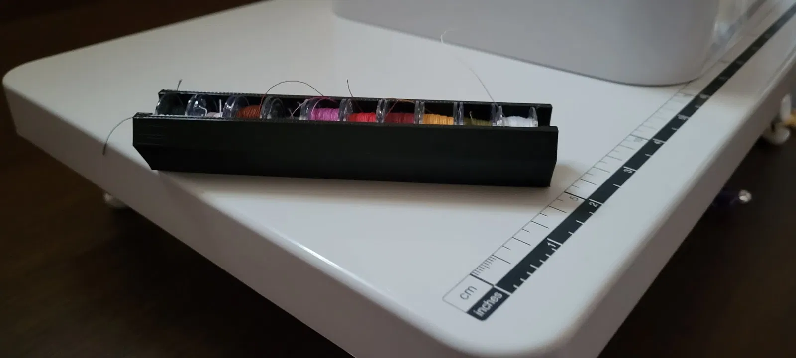 Điều này sẽ chứa 10 bobbin máy may Babylock hoặc có thể là các thương hiệu khác. In cái này bằng TPU vì nó cần phải linh hoạt để đưa chúng vào và lấy ra.