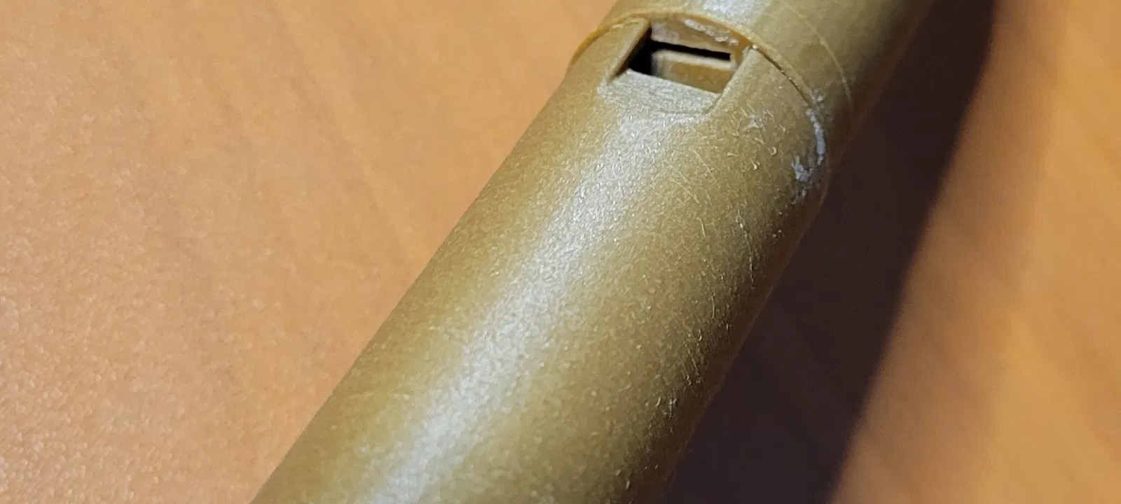 Khi dán nó lại với nhau, bạn cần đảm bảo căn chỉnh đường dẫn không khí của miệng sáo với lỗ âm. Tôi đã điều chỉnh đến mức mà tôi nghĩ âm thanh là tốt nhất khi thổi qua nó.