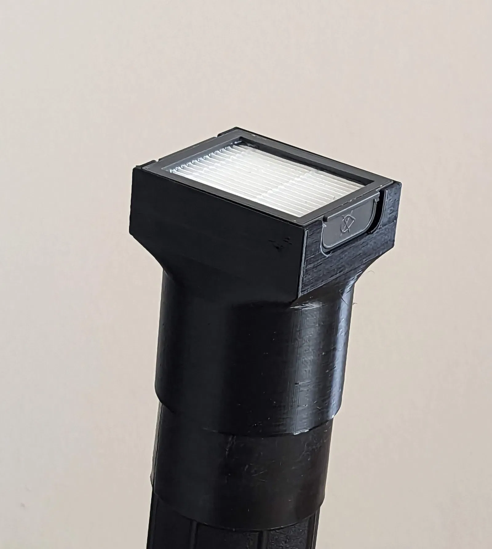 Bộ chuyển đổi này gắn vào ống hút ẩm/kho khô tiêu chuẩn và giữ một bộ lọc Roomba e/i/j để bộ lọc có thể được làm sạch