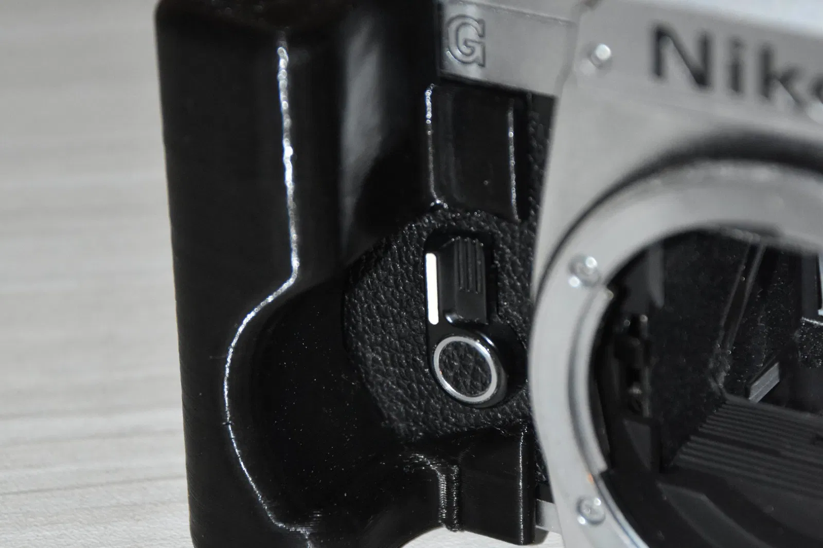 Thay thế tay cầm sâu cho Nikon FG SLR. Tay cầm gốc không sâu và với các ống kính lớn, bạn sẽ không cảm thấy tự tin khi cầm. Bằng cách thay thế nó, các ngón tay của bạn có thể hỗ trợ tốt hơn trọng lượng của máy ảnh với ống kính.