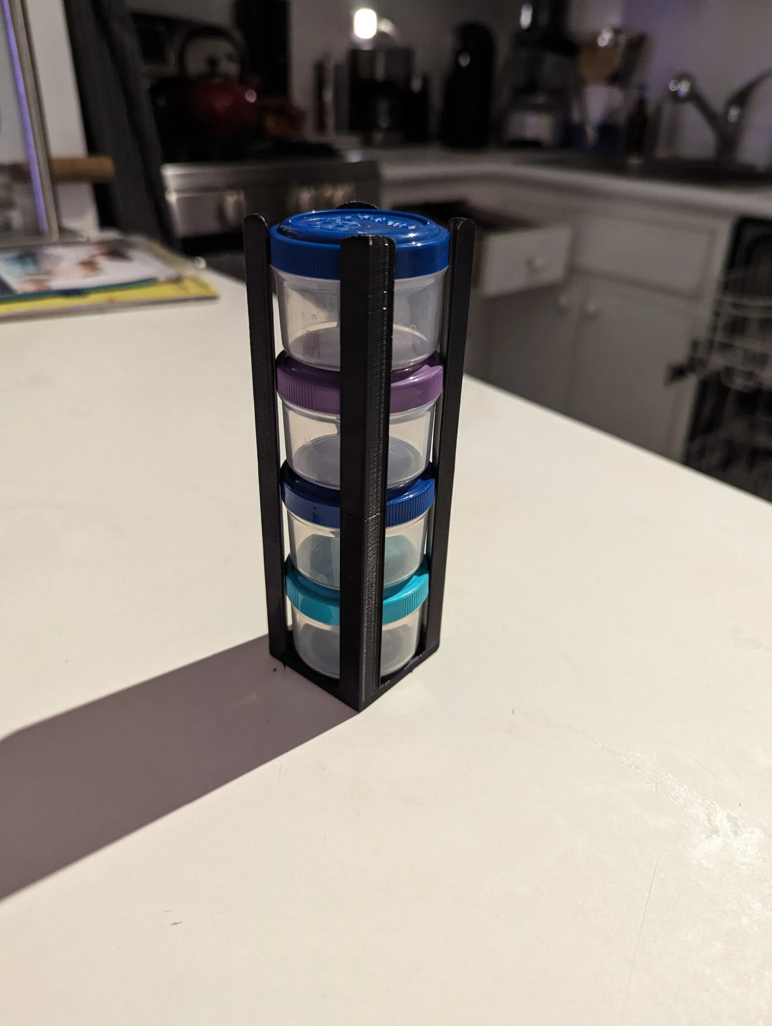 Một giá nhỏ để giữ cho những hộp đựng nước sốt salad tupperware nhỏ không bị rơi vãi khắp tủ của tôi.