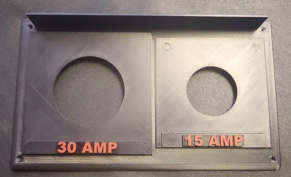 Đây là một phiên bản khác của Mount Inlet RV của tôi kết hợp cả giá treo 30 và 15-amp. Lỗ 15-amp cũng sẽ