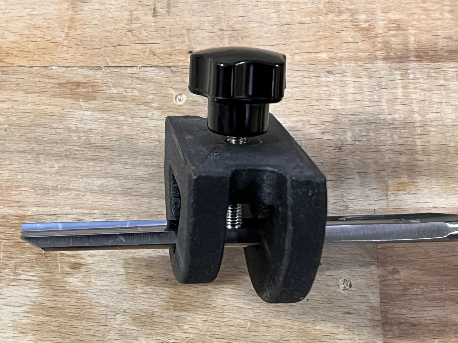 Sau đó, chỉ cần gắn bộ dẫn vào thanh dẫn của máy mài. Dụng cụ khoét rỗng giờ đây có thể nghiêng sang trái hoặc phải trong khi mài mà không làm thay đổi góc.