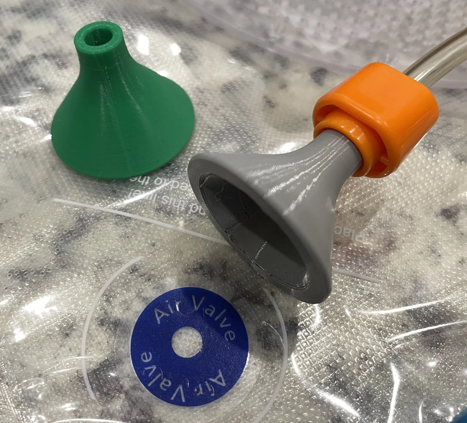 Bộ chuyển đổi đơn giản này cho phép một máy bịt kín thực phẩm kết nối với túi lưu trữ chân không, để giữ cho dây tóc máy in khô.