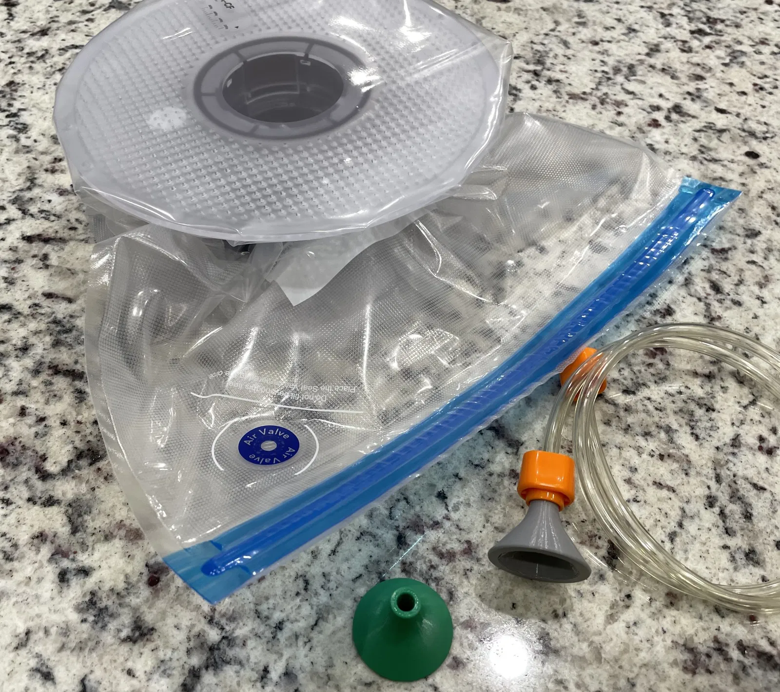 Túi hút chân không là cách tốt để lưu trữ các cuộn filament đã mở và giữ chúng không bị hấp thụ thêm độ ẩm. Các túi này có giá cả phải chăng và đi kèm với một bơm tay (hoặc một bơm chạy bằng pin nhỏ với giá cao hơn) để hút không khí ra khỏi túi. Bơm tay rẻ tiền không hiệu quả lắm và cũng không thú vị để sử dụng. Không vấn đề gì: Tôi có một máy hút chân không lưu trữ thực phẩm điện đầy đủ tính năng. Hoặc tôi đã nghĩ như vậy.