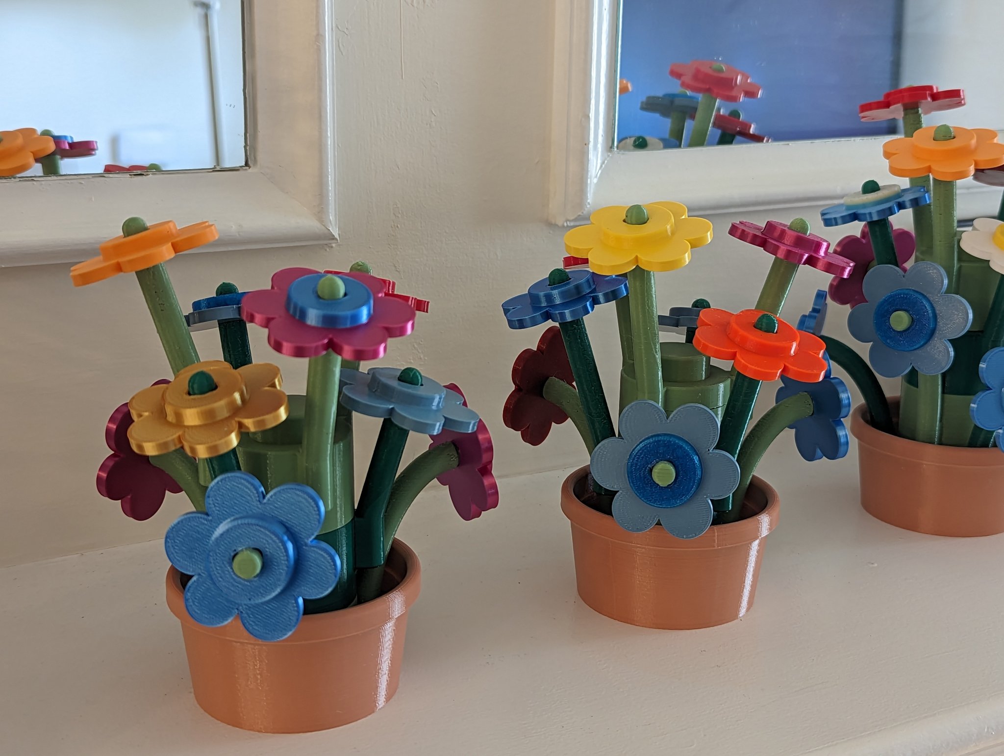 để lấy hoa gốc, chậu hoa và các thân thẳng. Tôi chỉ cung cấp những tệp này để tiện lợi. Tôi đã in chậu hoa bằng Prusament PETG Terracotta và các thân bằng Prusament PETG Jungle Green và Prusament PETG Pistachio.