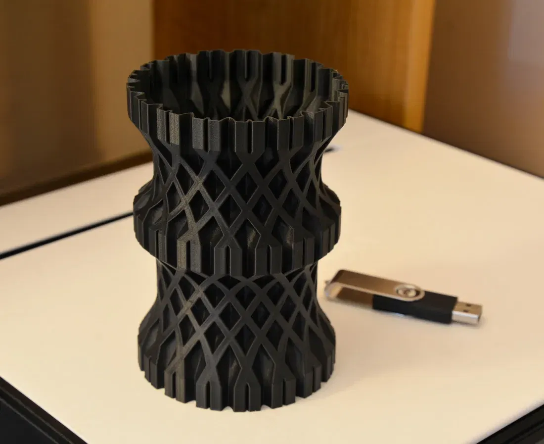 Bức ảnh cho thấy bình được in ở chế độ bình/xoắn với 1 lớp tường và 3 lớp đáy. Tệp stl là đặc. Nó in rất tốt ở chế độ bình hoặc chế độ bình thường.
